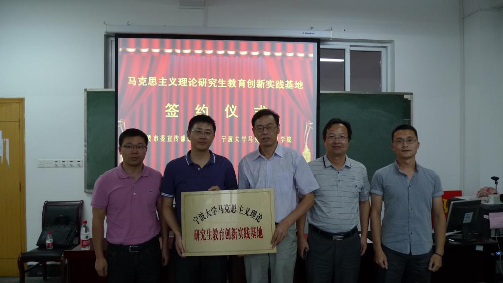 与宁波市委宣传部理论处共建的“马克思主义理论研究生教育创新实践基地”举行签约、揭牌仪式。市委宣传部理论处江再国处长与马克思主义银河娱乐网