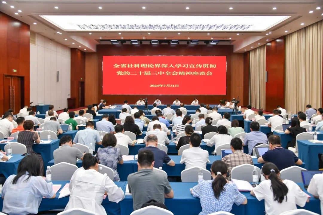 7月31日,浙江省社科理论界深入学习宣传贯彻党的二十届三中全会精神座谈会在省委党校文欣校区举行,省委宣传部常务副部长来颖杰、省社科联党组书记郭华巍,以及全省社科理论界专家学者100多人参加会议。会议由省社科联党组书记郭华巍主持,省委党校常务副校长陈柳裕、中央党校教授许正中、复旦大学教授唐亚林、省社科院院长查志强、浙江大学教授金雪军、浙江省重点智库生态文明研究院院长沈满洪、银河娱乐网