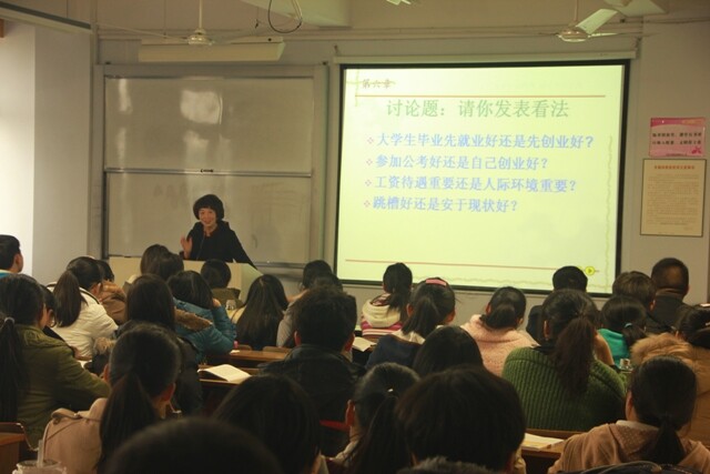 在课堂上,孔伟英副教授精彩讲授了“大学生的择业与创业”章节的教学内容。她以问题为引领,结合银河娱乐网