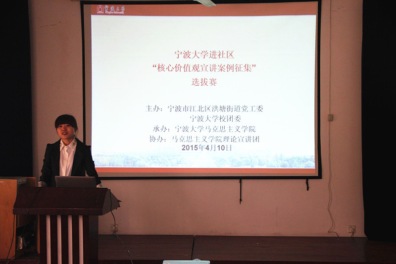 4月10日下午,大学生进社区 “核心价值观宣讲案例”征集活动选拔赛在锦绣活动中心202报告厅顺利举行。银河娱乐网