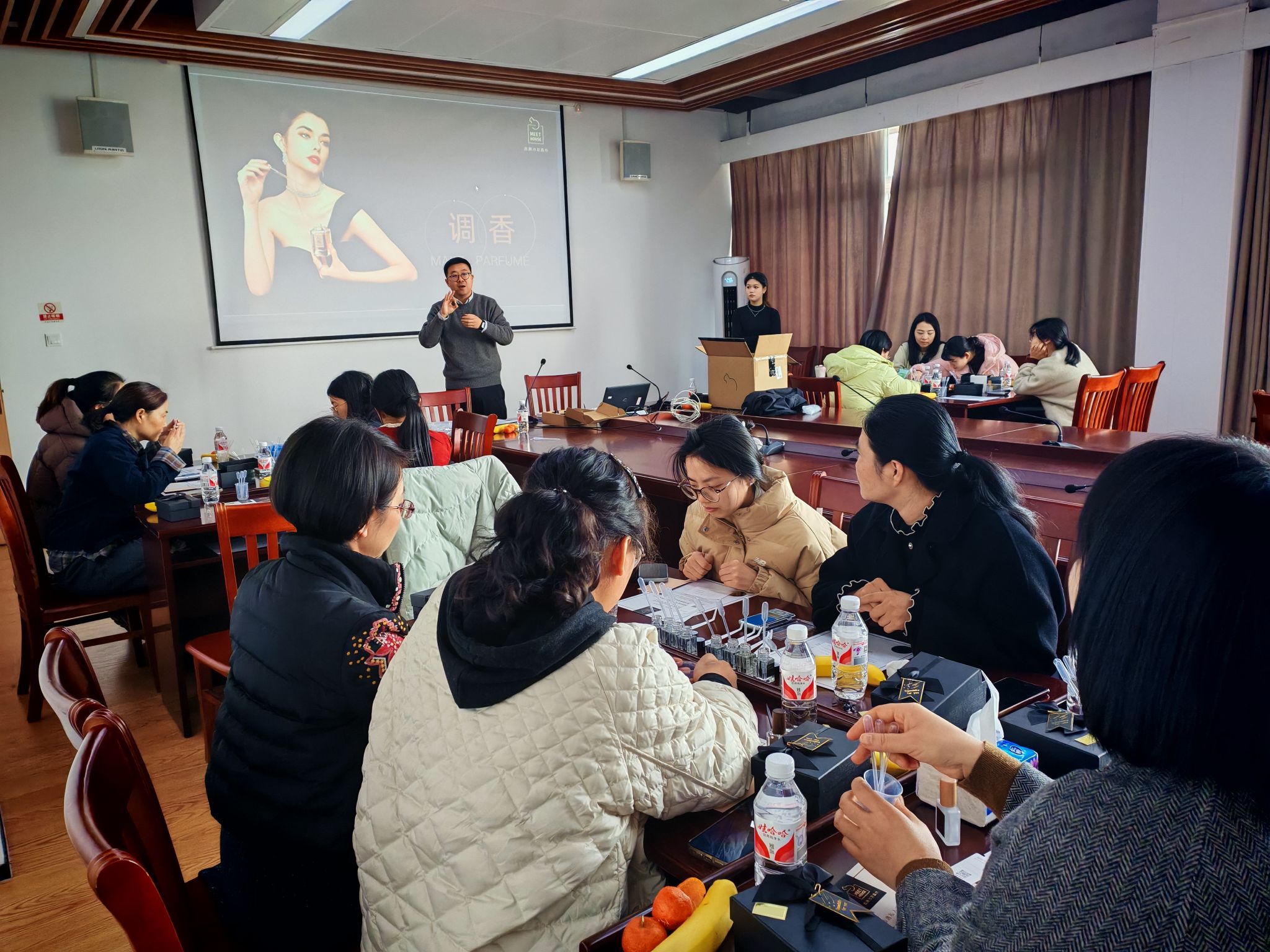 专业调香师首先为女教职工们带来了一场精彩的香氛文化讲座。从香水的起源、发展历史到不同香调的特点、香水的使用方法,调香师娓娓道来,带领大家走进奇妙的香氛世界,感受香氛文化的独特魅力。