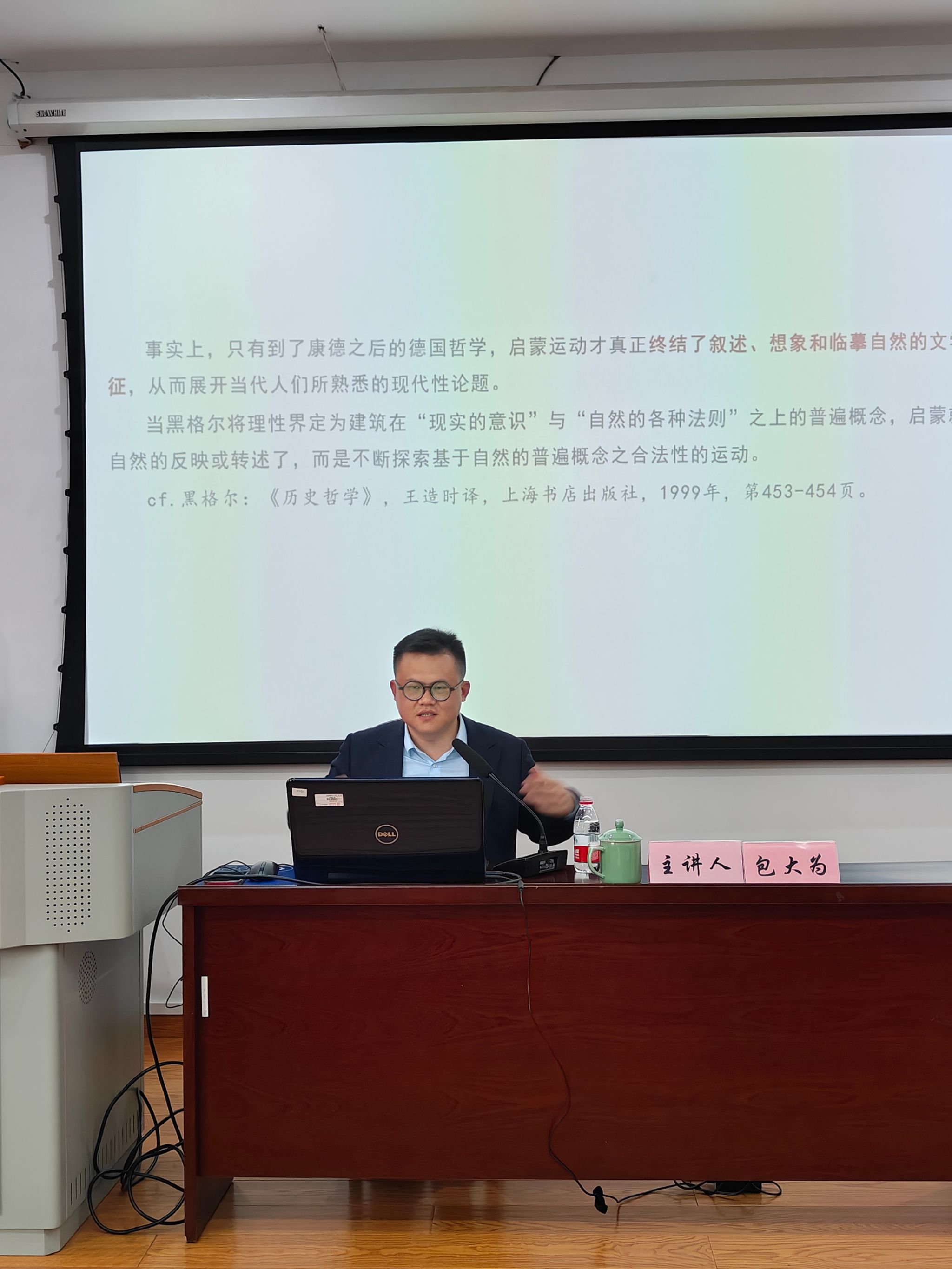 在讲座开场,包大为教授整体性论述了启蒙的界定在启蒙运动的不同阶段的鲜明区别。着重论述了在康德以降,启蒙表现出来的三方面特征:似乎是理性和科学、似乎又是以理性为名的文学式的叙述与想象、确切地又表现为哲学革命。本次讲座围绕“作为文学政治的启蒙、重塑自然与理性的哲学革命、启蒙的终结”的逻辑链条展开。