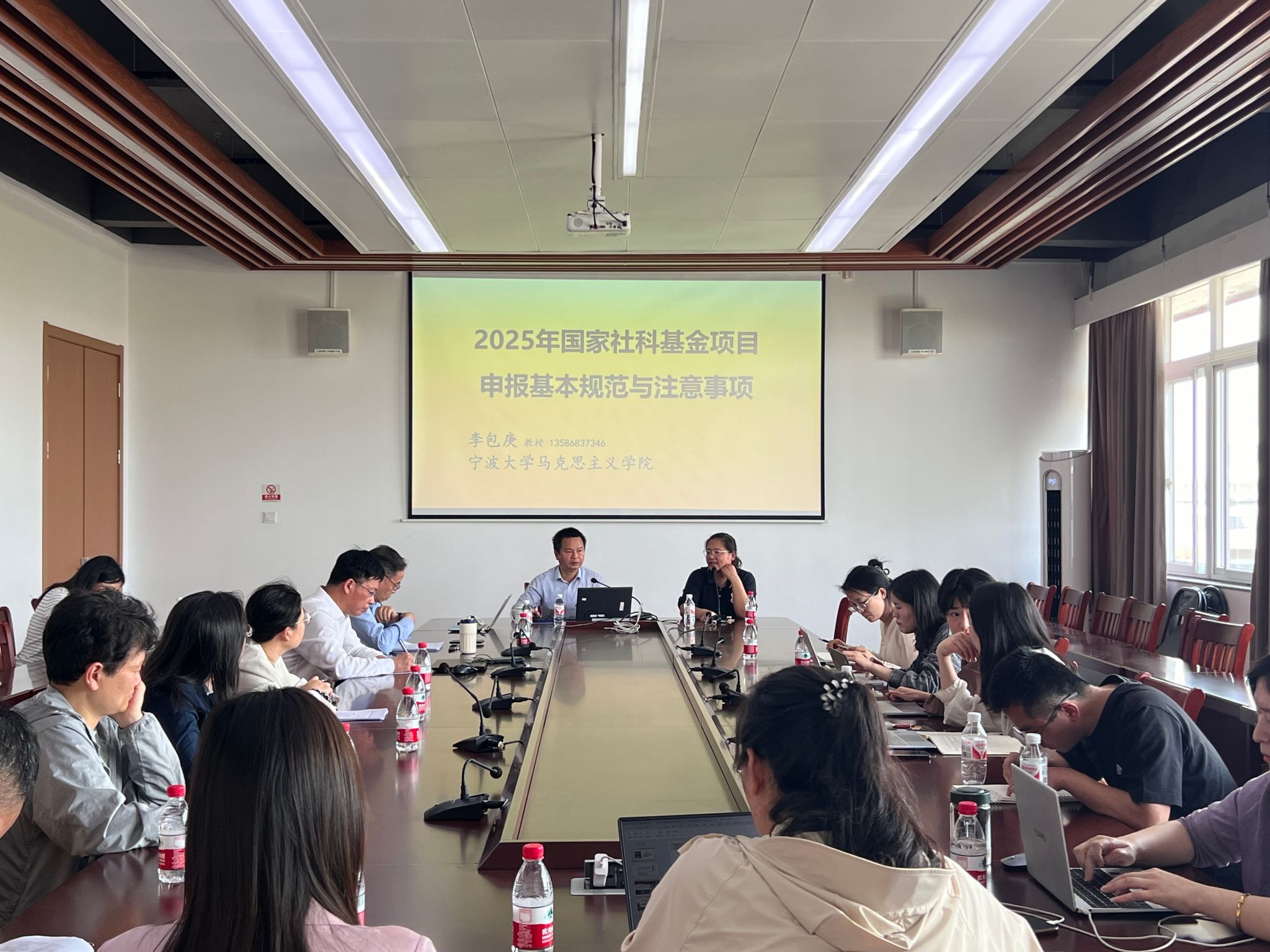 于3月26日下午,在513会议室组织召开了国家社会科学基金项目申报动员及辅导会议。本次会议由学术副院长杜红艳主持,执行院长李包庚担任主讲。