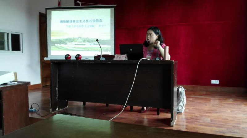 李小兰副院长带领研究生一行,走进舟山嵊泗县嵊山镇政府,开展关于“社会主义核心价值观”的主题讲座。嵊山镇副书记陈波主持本次讲座,并代表镇政府欢迎李小兰等一行的到来。参与本次讲座的有镇政府的基层干部、驻岛官兵、社区老党员等,李小兰副院长以“通俗解读社会主义核心价值观”为题,就社会主义核心价值观提出的背景、内涵、意义以及如何践行等多方面进行深入解读,并结合最近几天在嵊山当地考察、调研了解的情况、嵊山乡情民俗等进一步阐释了社会主义核心价值观的作用和意义,赢得与会人员的认同。