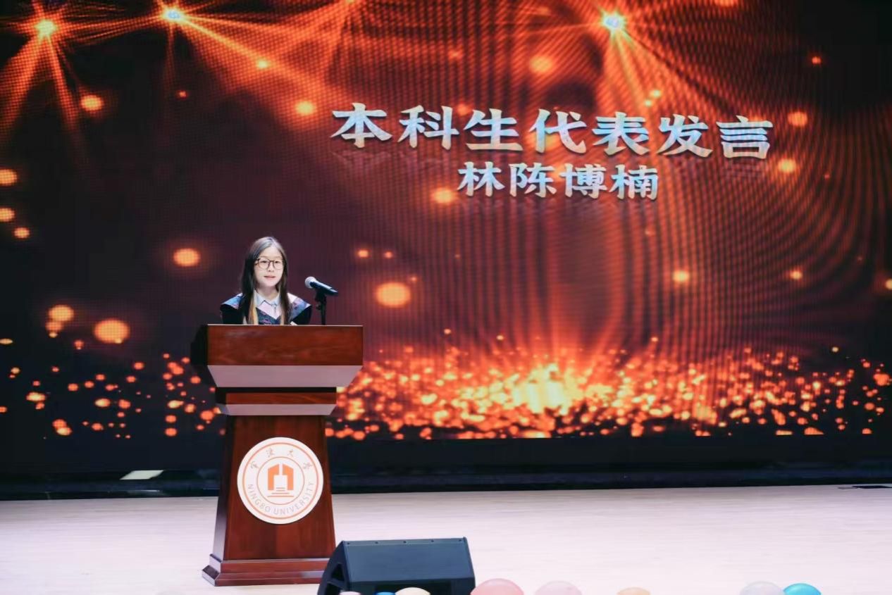 本科毕业生代表林陈博楠,回顾了自己在宁大求学的四年,对银河娱乐网