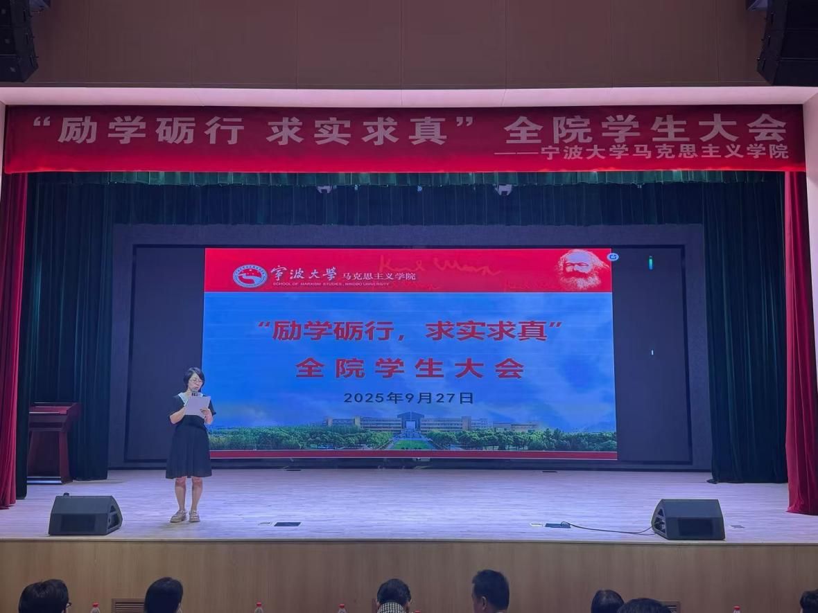 对与会师生表示欢迎,并简要介绍了大会议程与主旨。她强调,本次大会旨在总结过往、展望新程,激励全院同学励学砺行、求实求真。