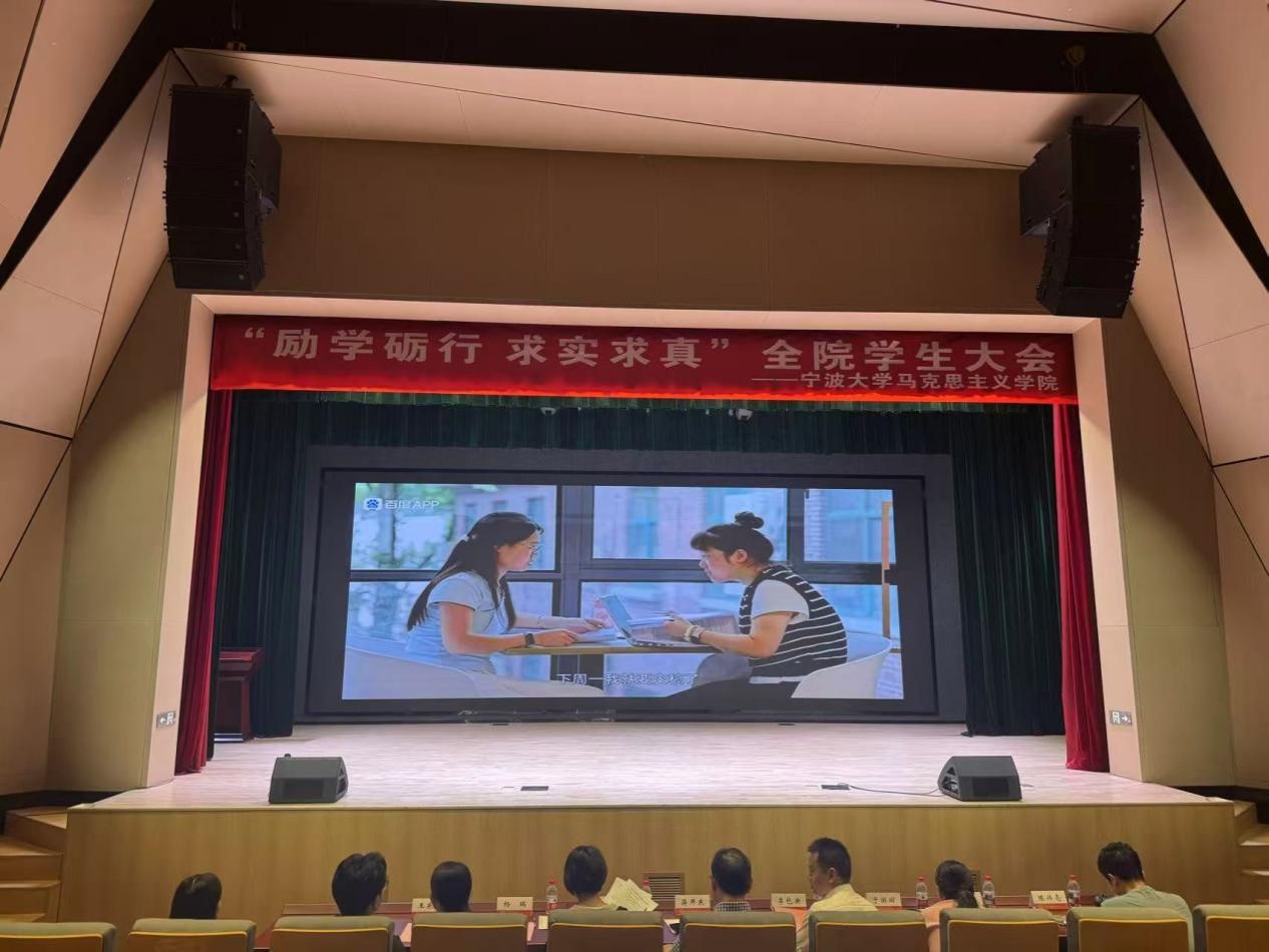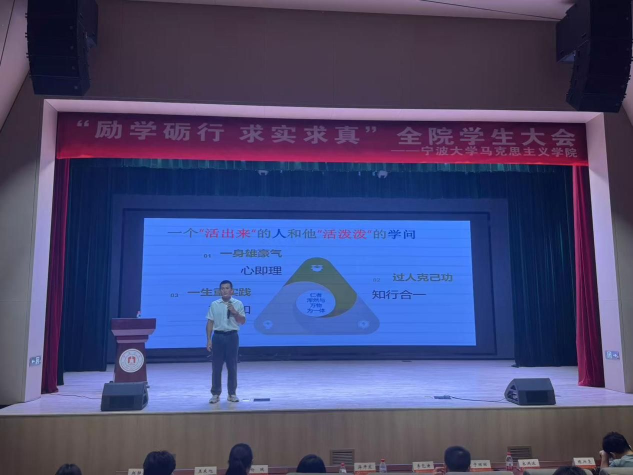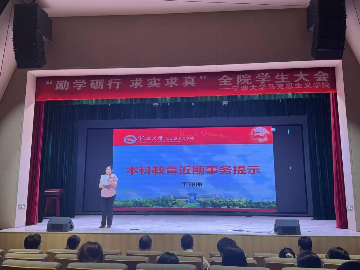 在锦绣小剧场隆重举行以“励学砺行 求实求真”为主题的全院学生大会。参加本次会议的有院党委书记蒋开东,执行院长李包庚,党委副书记、纪委书记吴莲红;思政中心主任于丽丽;心理健康指导中心专职教师宋洪波;班主任陈兴亮、杨瑞、王东旭、赵静芳;辅导员杨曼、王子烜,以及全体本科生和研究生。吴莲红主持会议。