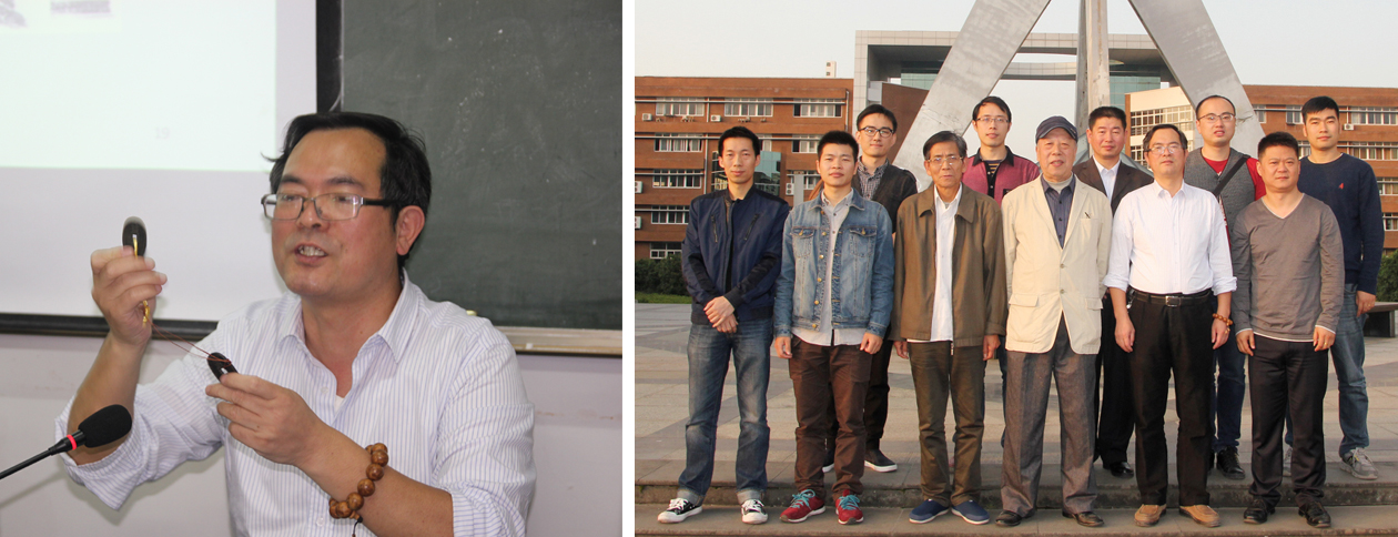 上图为研讨会现场,下图左为鲍展斌作专题报告,下图右为莅会的宁波市钱币专家与金融专家合影。