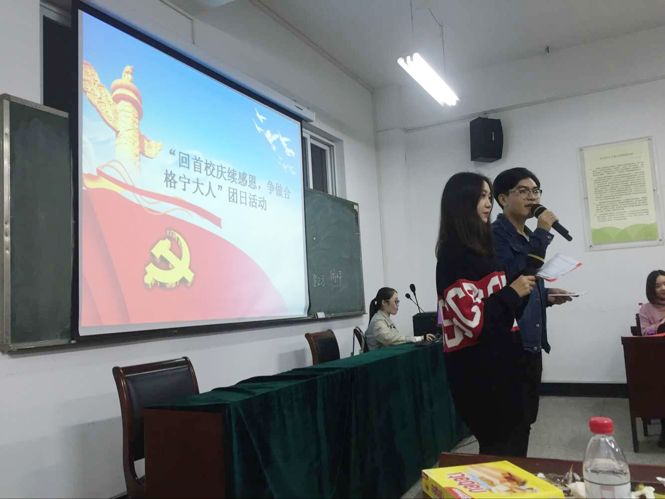 在102报告厅举行“回首校庆续感恩,争做合格宁大人”团日活动。活动由陈佳眉和王东旭主持,2015级本科生和2016级研究生参加。