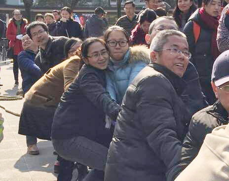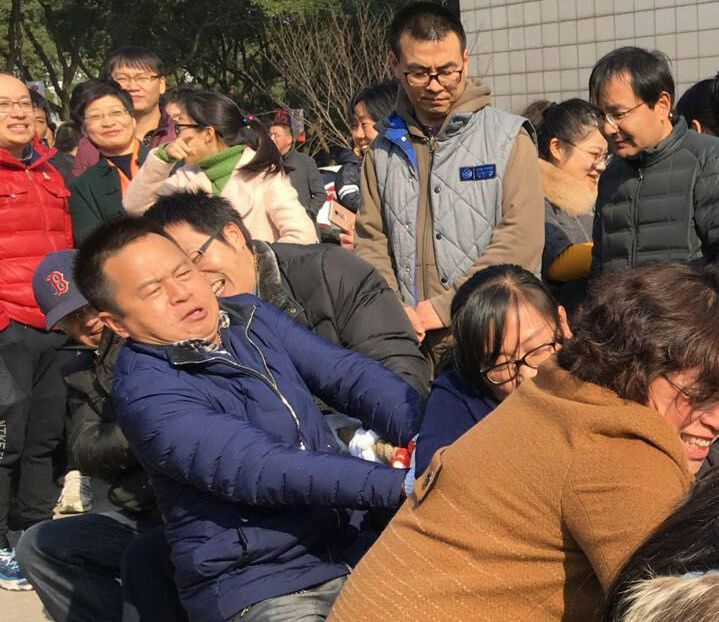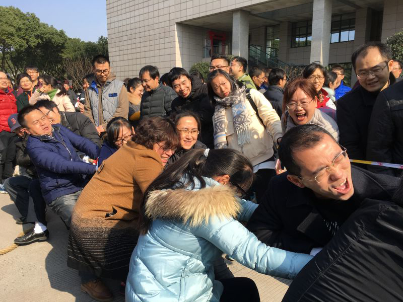 “迎新年”教职工拔河比赛在安中大楼前拉开帷幕。马克思主义银河娱乐网