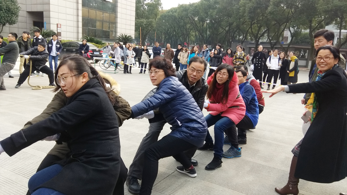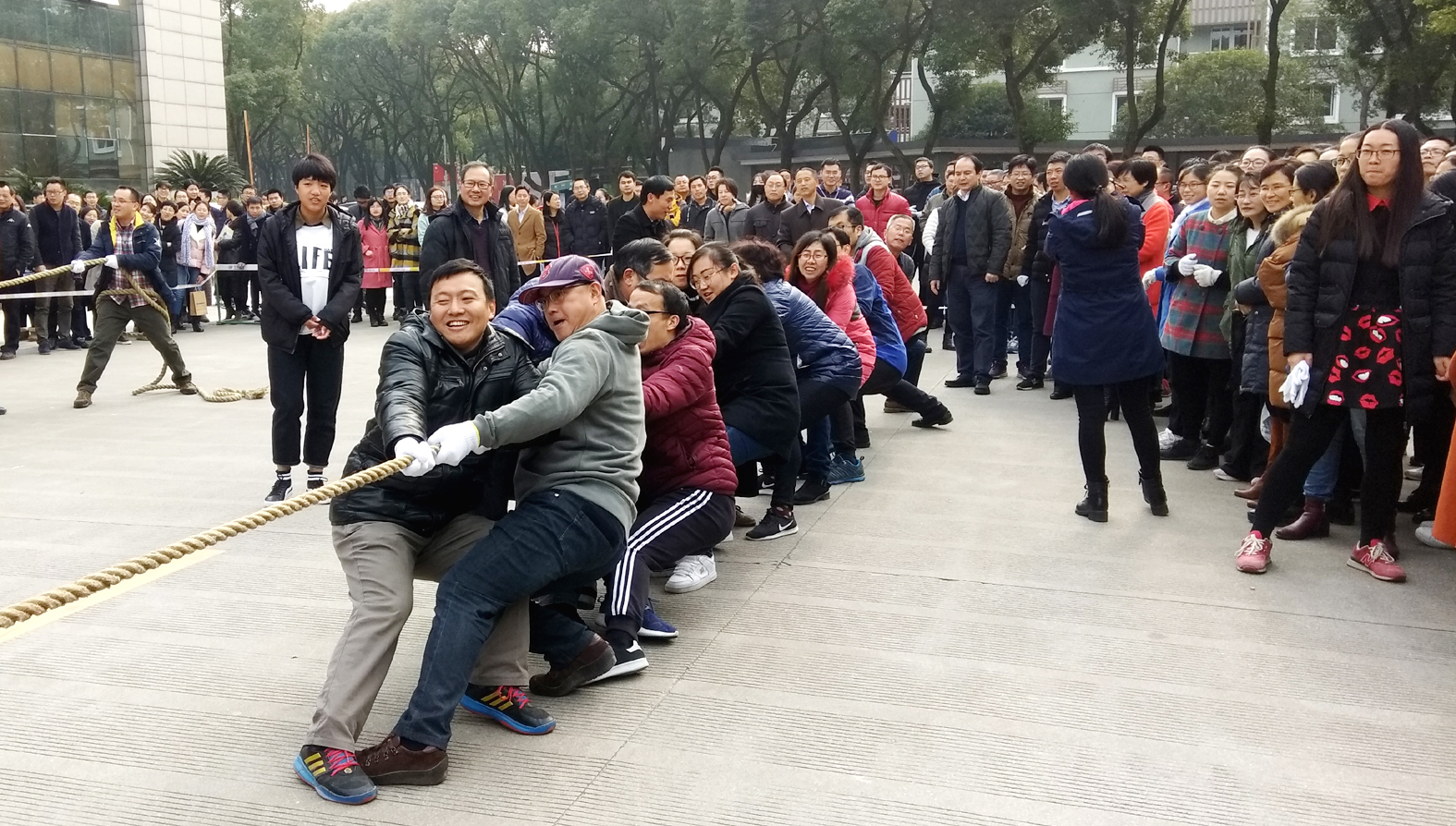 “迎新年”教职工拔河比赛在安中大楼前拉开帷幕。马克思主义银河娱乐网
