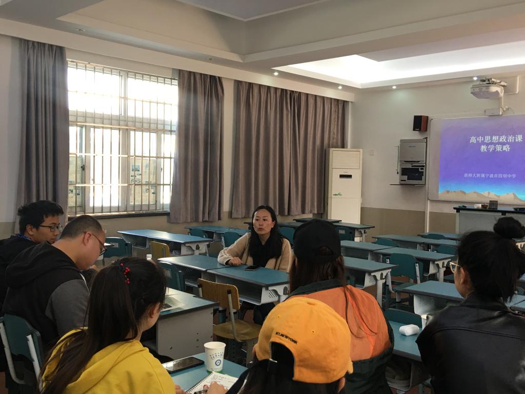近日,银河娱乐城城 2016级思想政治教育专业全体同学专赴镇海中学、宁波二中、宁波四明中学等高中思想政治课堂分别倾听了宁波名师——包嘉珠、毕建红和许溶溶老师的精彩一课。听课结束后,三位老师还就思想政治课课堂教学设计、思想政治课课改情况以及如何做好一名优秀的思政课老师等话题,和同学们作了深度交流。同学们纷纷表示收获满满。