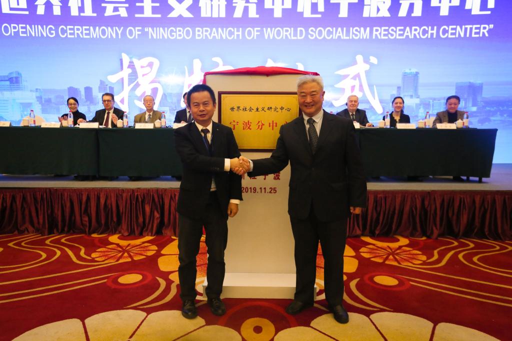 执行院长李包庚共同为“世界社会主义研究中心宁波分中心”揭牌。