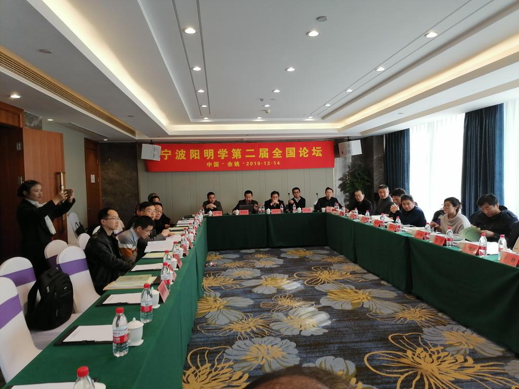 张实龙教授分别对王阳明亲传高足弟子钱德洪的学术思想阐述各自的观点。朱炯点校整理的《钱德洪集》与张实龙所著的《阳明心学传播者——钱德洪研究》分别出版,大大推进了对钱德洪研究的进程,为传承弘扬阳明文化作出了重要贡献。华建新对第一阶段的学术研讨作了总结性发言,他认为:一是要注重对阳明学的地域性研究;二是要开拓视野,密切关注王阳明的弟子对心学发展所作出的重大贡献;三是要以理论研究为引导,进一步推动“阳明故里·阳明古镇”的理论研究与实际应用,以彰显余姚阳明学的时代精神和当下价值。下午,继续进行圆桌论坛。全国各地的知名阳明学专家刘聪、刘新军、俞秀玲、马寄均、褚纳新、计文渊、王孙荣、叶云、王志俊、王志鹏等30多位同仁作了精彩与深入的发言,对安徽王学、阳明学与美学、南大吉与王阳明、阳明四句教等问题展开深入的研究。很多余姚乡贤结合自己的工作谈自己对阳明学的研究,生动有趣,耳目一新,令人感动,体现出浓郁的地方性与学术性。