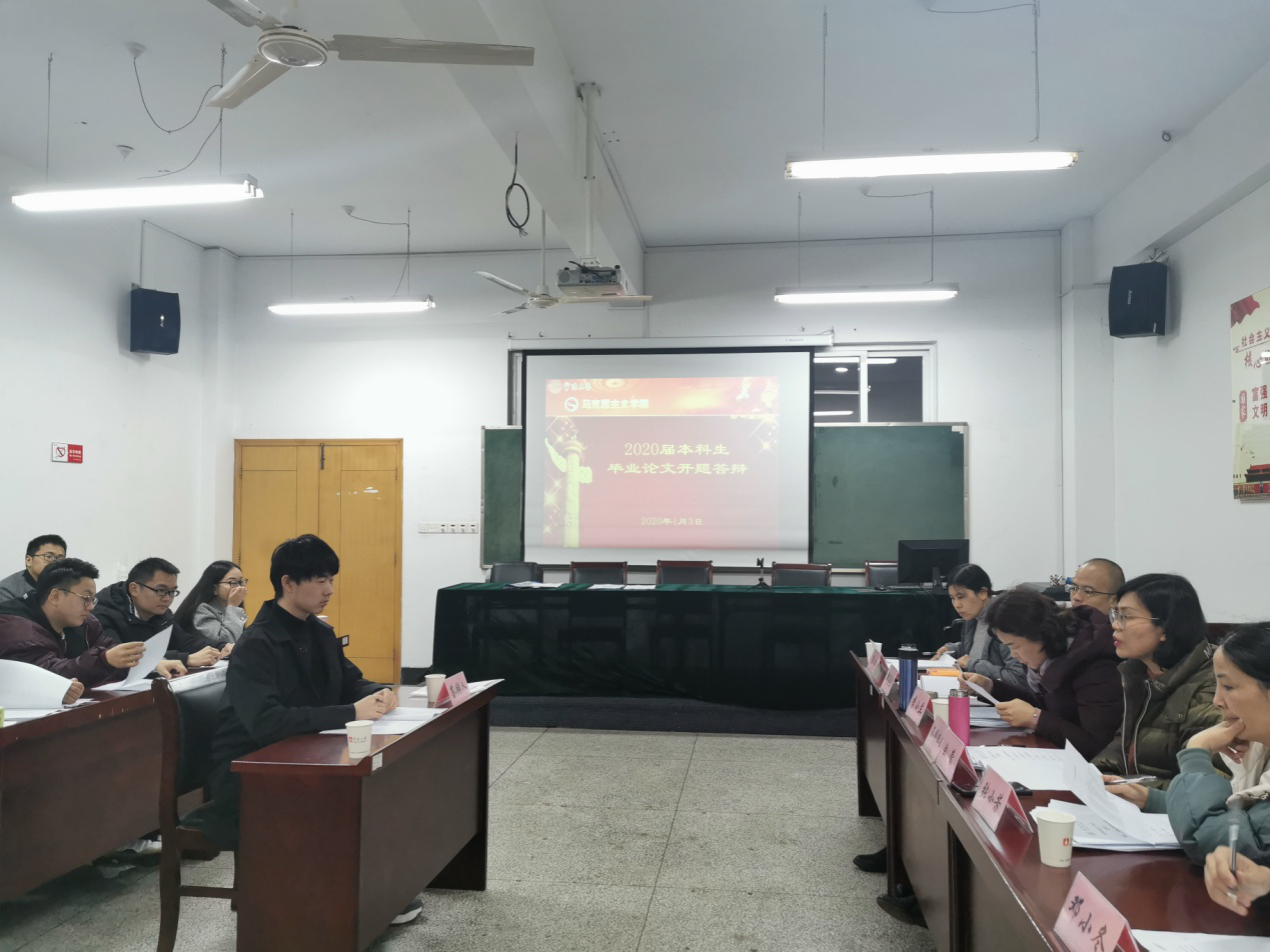 2016级本科生毕业论文开题答辩会在102会议室举行。曲蓉副院长任答辩小组组长,思想政治教育系主任张小芳副教授、副主任郑善庆博士,李小兰副教授、康洁副教授、邓小冬博士任答辩专家。答辩会由曲蓉主持。