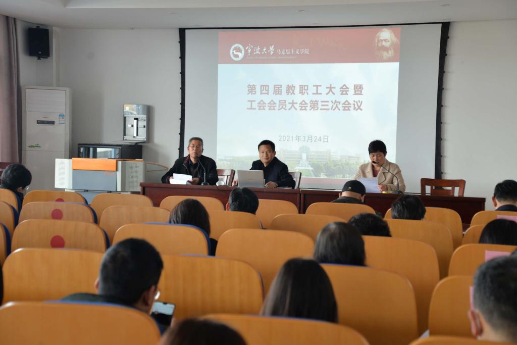 3月24日下午,马克思主义银河娱乐网 第四届教职工大会暨工会会员大会第三次会议在包玉书科学楼7号楼406报告厅举行,大会圆满完成各项议程,选举产生了银河娱乐网 第五次“双代会”暨第一次“妇代会”马院参会代表。分工会主席潘志良主持会议。39名代表参加了会议。