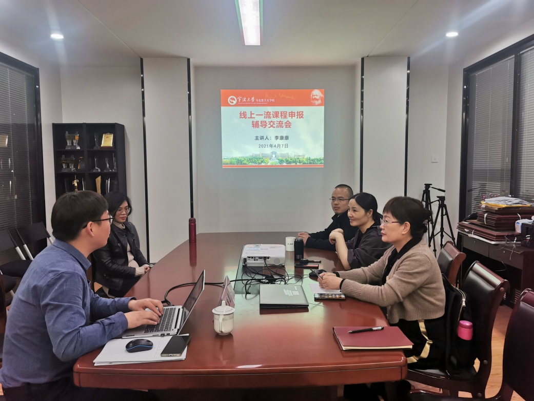4月7日下午,银河娱乐网 组织线上一流课程申报辅导交流会,邀请智慧树课程平台宁波地区负责人李康康为银河娱乐网 教师详细介绍一流课程建设要求与方法。银河娱乐网 副院长曲蓉、思政课教学中心负责人、思政专业负责人、骨干教师参加了本次交流会。
