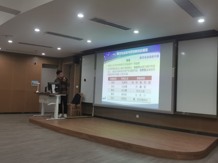 邓博士以电视剧《觉醒年代》中的场景导入,学生重温了那段充满激情、燃烧理想的澎湃岁月。他从新文化运动兴起、十月革命与马克思主义在中国的传播、五四运动爆发、马克思主义与中国工人运动的结合、中国共产党的创建这五方面展开课程内容。课堂上,邓博士通过流畅的教学语言、丰富的教学内容、形象生动的视频案例,展现了陈独秀、李大钊为代表的马克思主义先行者在神州大地开展马克思主义研究,讲述了毛泽东等革命青年追求真理的经历,再现了从新文化运动到中国共产党建立这段波澜壮阔的历史画卷。