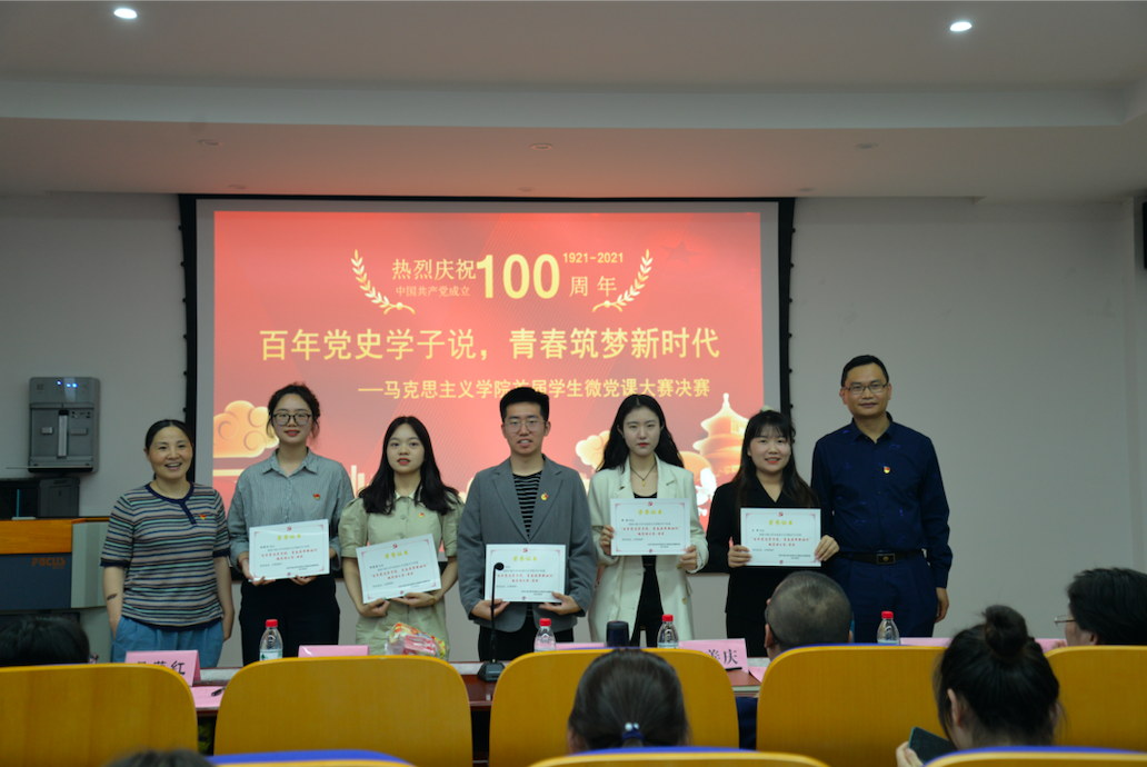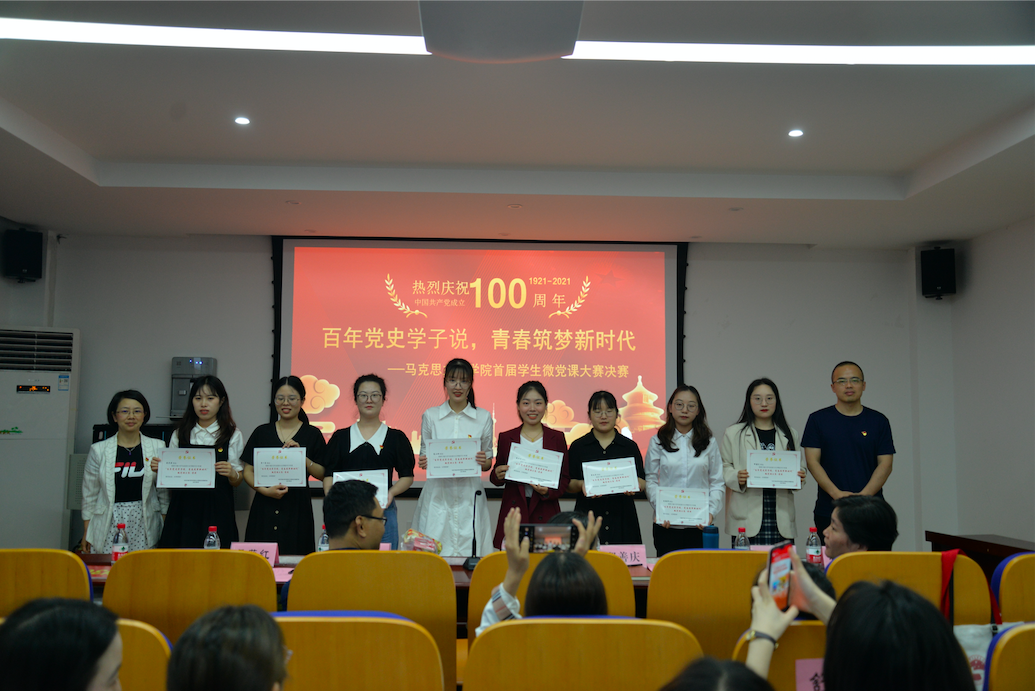 广大青年作为传承红色基因的重要力量,在建党百年之际,讲好党史更是马院青年学子义不容辞的责任。本次大赛以“百年党史学子说,青春筑梦新时代”为主题,16位选手进行了微党课展示。选手们深入挖掘党史精神富矿,将对党史的触动、感动转化为干实事、干成事的动力,为百年党史注入青春活力,增强学习教育自觉。现场比赛精彩纷呈,经过激烈角逐,最终柴雨轩、把安丹、宋子齐3位同学荣获一等奖,陈铖佳、钟薇薇、宋国杰、杨钰、王瑾5位同学获得二等奖,耿双凤、朱银妍、曹佳菲、王静、高山珊、贾一曼、邵露艺、戴莉婷8位同学获得三等奖。