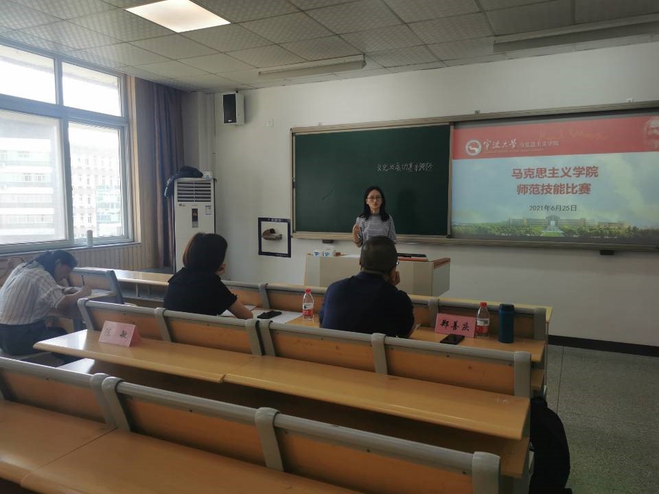 第十五届师范生教学技能竞赛选拔赛分三组在包玉书科学楼8号楼顺利举行。2018级思想政治教育师范专业全体本科生34人均参加了本次比赛。宁波市教学名师包嘉珠老师、许溶溶老师、陈敏老师、银河娱乐网