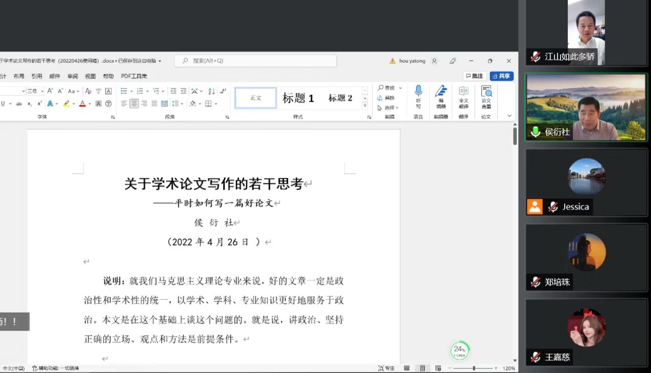 博士生导师侯衍社教授应邀以《关于学术论文写作的若干思考》为题,作学术交流分享的云报告。这也是银河娱乐网