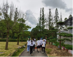 7月2日,实践团队前往将军廊、清风林和绿色长廊进行参观,并继续开展调研访谈。从当地村民口中,团队成员了解了滕头村村民住宅建设发展情况。滕头村修建了不同类型的房屋住宅,同时制定了村民购房优惠、村民补助等惠民政策,以满足居民不同层次的住房需求。以旅游、园林绿化、房地产为核心的第三产业群体,已成为滕头经济和谐发展的新的增长点。