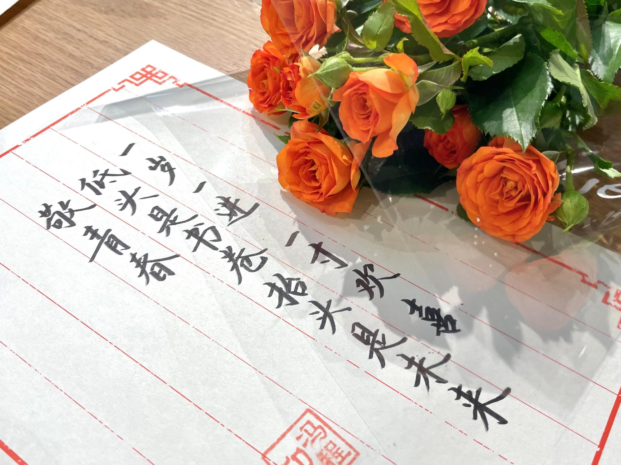 的“惊喜”——每人一束鲜花和班主任冯程老师写在信纸上的“三行诗”开学寄语:“人生一年之春,一日之晨,就是我们的大学时代”“勤能补拙是良训,何况你,好聪明呢”……