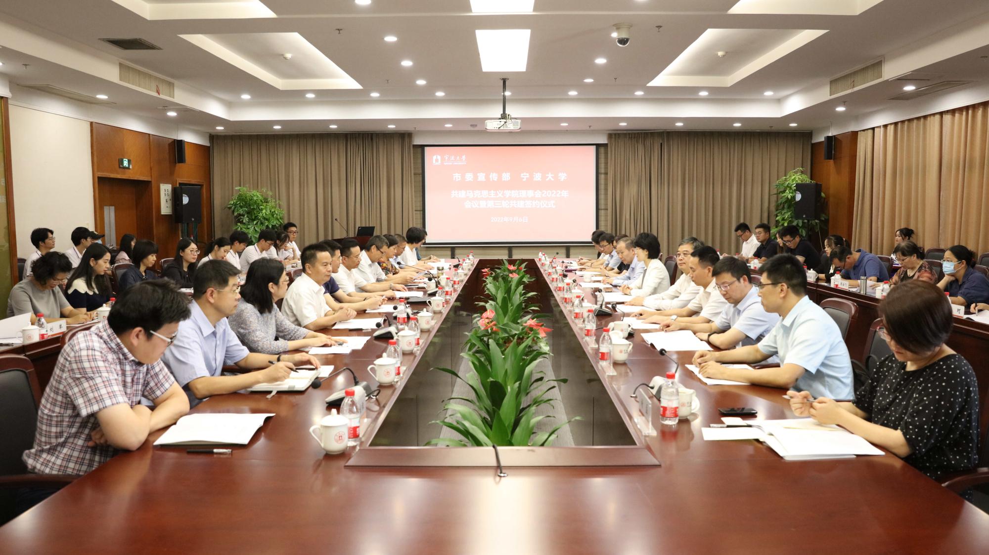 理事会2022年会议暨第三轮共建签约仪式举行。宁波市委常委、宣传部部长金彦,市委宣传部常务副部长徐方,市社科院院长傅晓,市委宣传部副部长胡文飞,市教育局党委副书记徐文姬,银河娱乐网