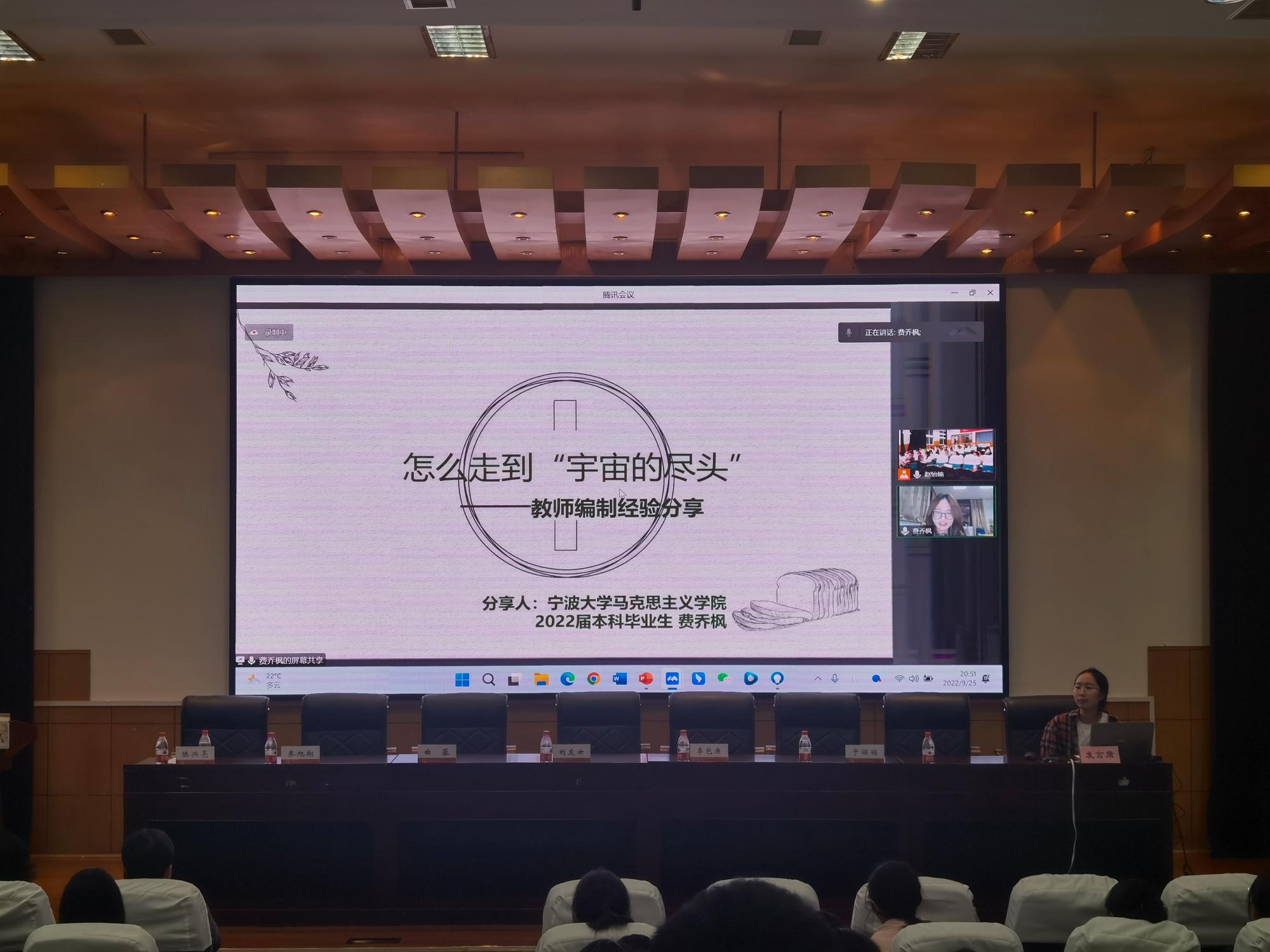 马理论专业研究生、2022届校友费乔枫现为杭州市十三中的老师,她们分别就就考研、考编分享了自己的经验及感悟。2005届校友、浙江省组织部人才办副主任王国强,介绍了其所在班级考公务员情况。2005届校友、云南省楚雄州南华县委书记马特,结合其10余年公务员生涯,为同学们分享了其做公务员的宝贵体会。优秀校友、浙江省委宣传部办公室副主任谢鸣,通过自身人生经历,生动形象地为同学们解读了何为奋斗人生。