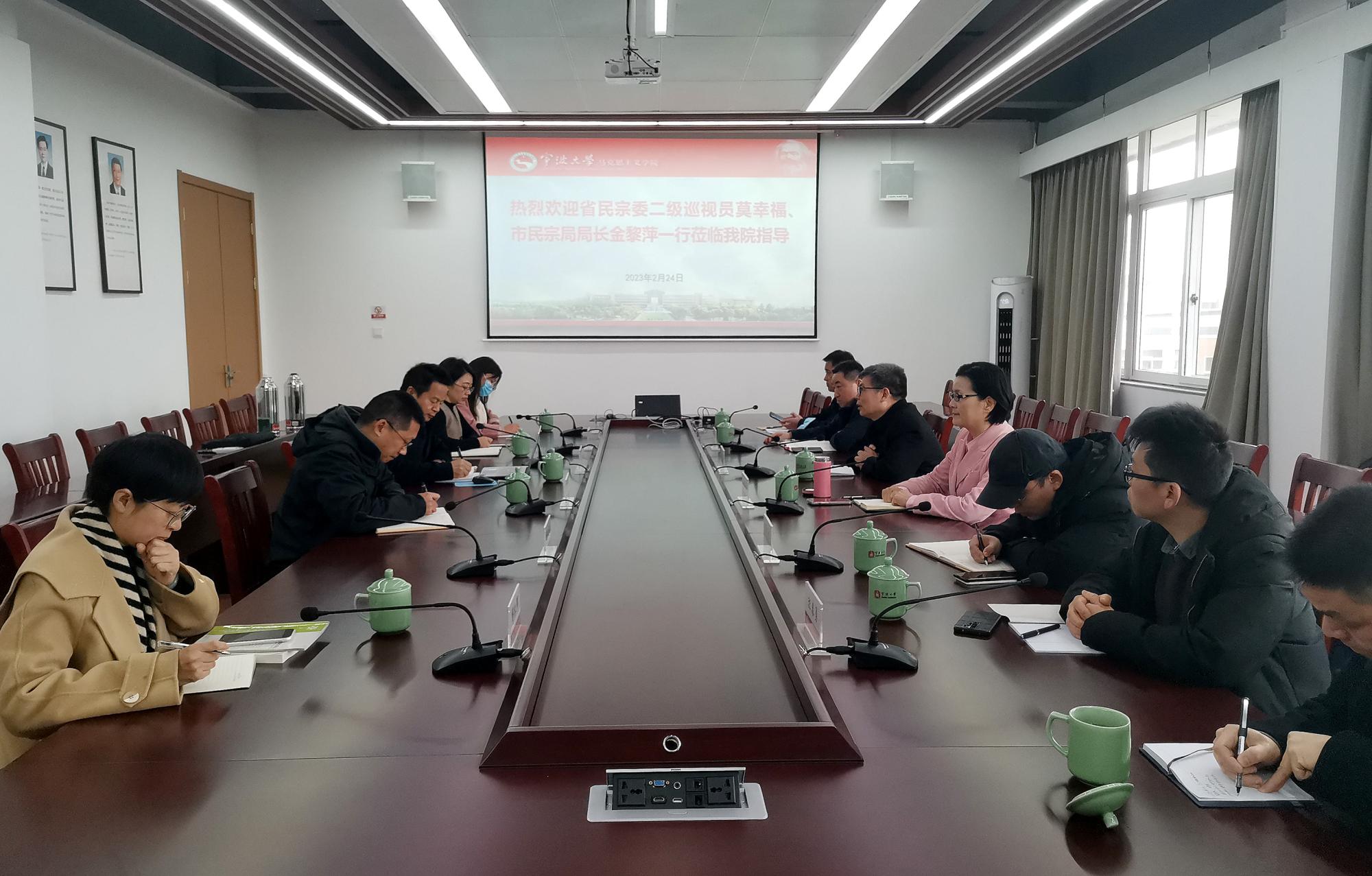 2月24日上午,浙江省民宗委二级巡视员莫幸福一行来院调研,宁波市民宗局局长金黎萍等领导陪同。银河娱乐网