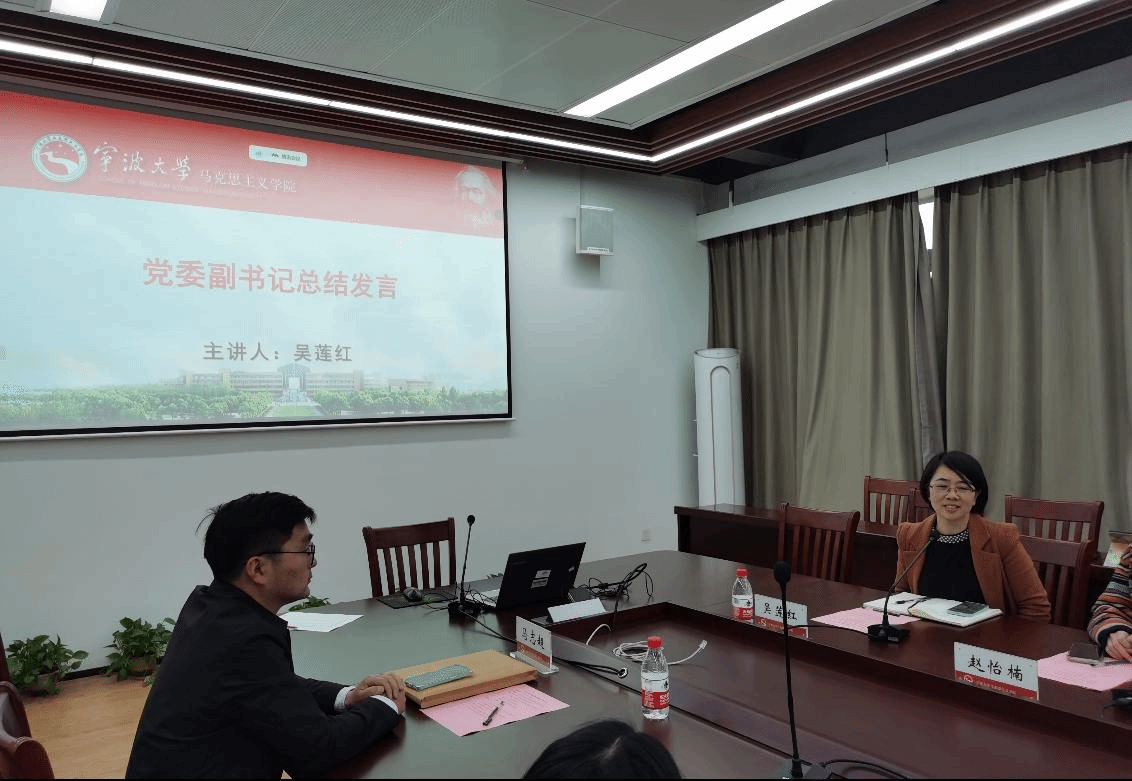 党委副书记吴莲红、省交通集团宁波管理中心相关人员、学工办助理徐涵琪和马院部分学生参与了此次会议。会议由辅导员赵怡楠主持,以线上线下相结合的方式同步开展。
