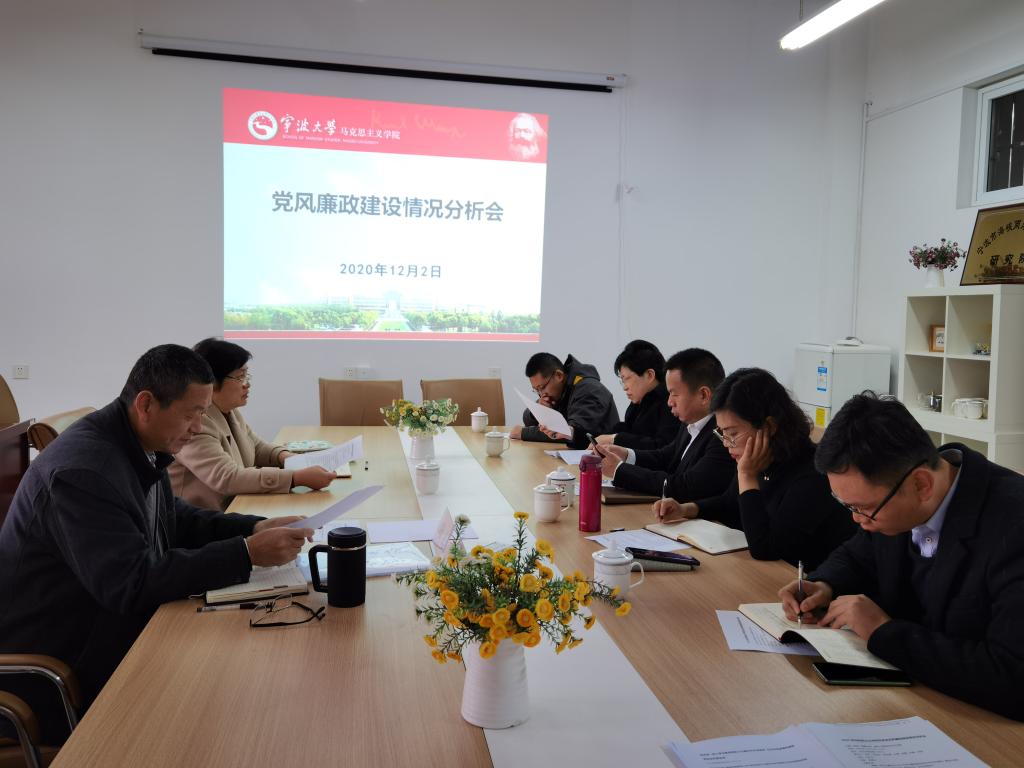 党风廉政建设形势。会议重点分析了“清廉马院”建设工作落实情况,领导干部落实“一岗双责”、民主集中制、作风建设情况以及单位(部门)涉及人、财、物管理使用等关键环节的反腐倡廉情况等。