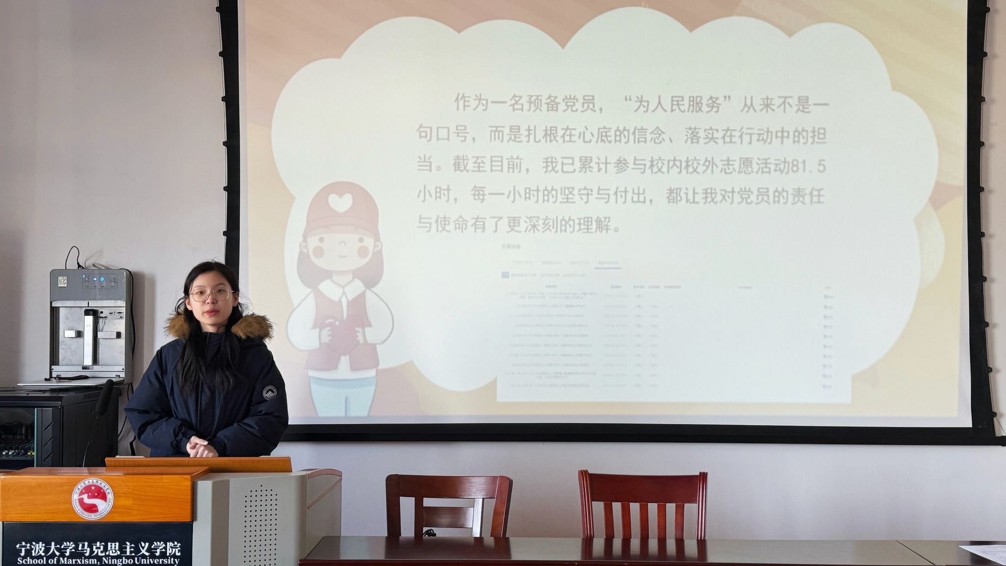 杜众同志结合参与社区志愿服务的经历,讲述了如何在基层一线服务群众、化解矛盾。她以“群众的小事就是党员的大事”为出发点,用真实案例展现了青年党员的责任意识与为民情怀,为支部成员提供了可感可学的身边榜样。