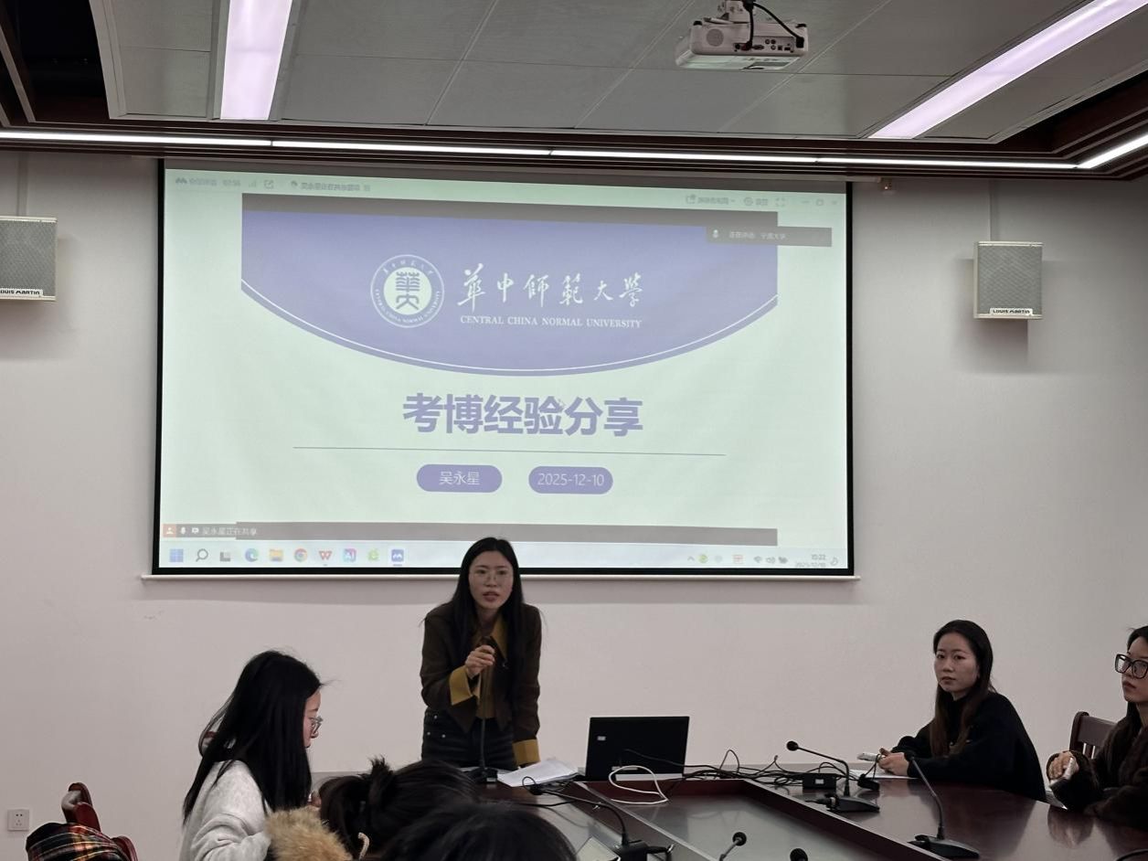 为深化理论学习、传承备考经验、凝聚思想共识,切实帮助学生党员明确学术方向与考博路径,2025年12月10日,马克思主义中国化研究生党支部在7号楼513会议室举办“党建引领强信念 薪火相传助研途”主题党日活动。活动特别邀请2025届马克思主义理论专业优秀校友、现于华中师范大学攻读博士学位的吴永星,分享学术研究与考博经验,银河娱乐城城 全体学生党员参加。