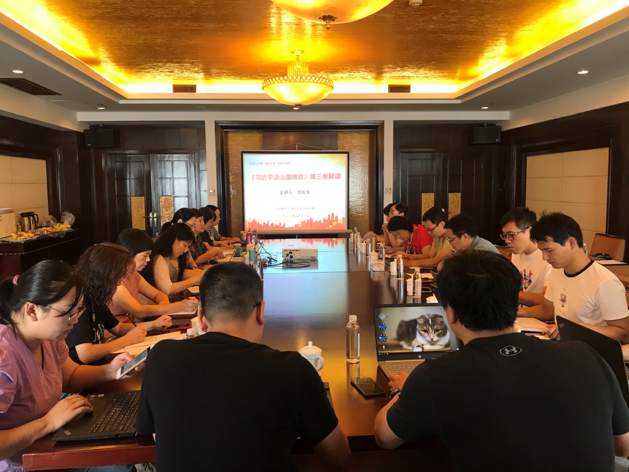 党总支书记刘友女以“《习近平谈治国理政》第三巻解读”为题作了报告。她首先对《习近平谈治国理政》第一、二、三卷作了简单的介绍,指出《习近平谈治国理政》是学习习近平新时代中国特色社会主义思想的权威读本。并对其时代背景、根本主题、根本观点进行了精彩解读。