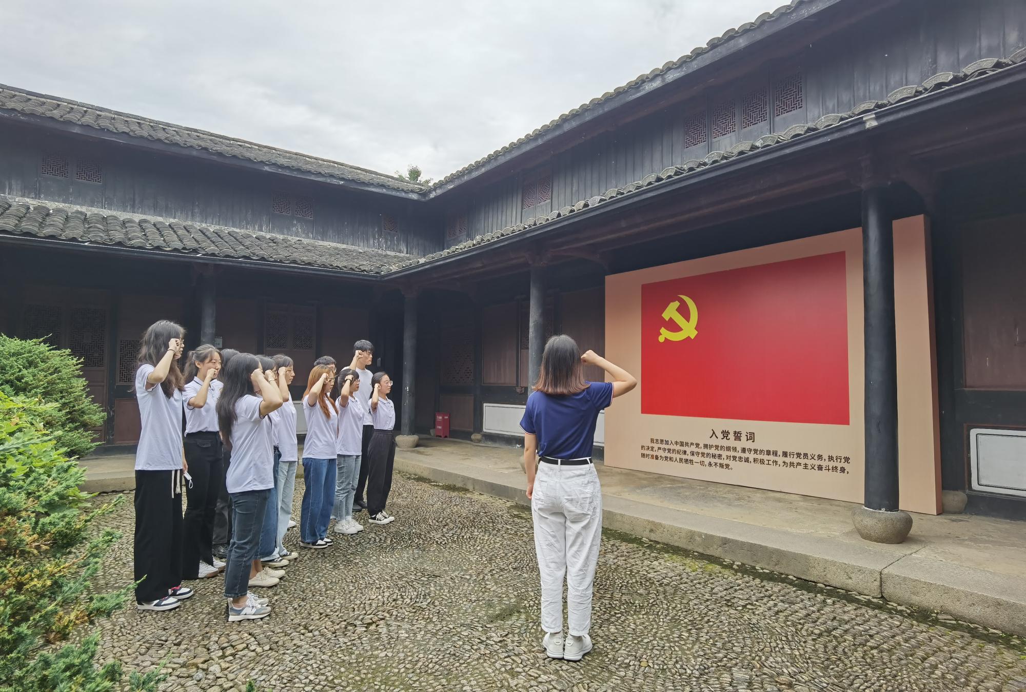 第二站是浙东区党委旧址,新党员进行“入党宣誓”仪式。学习浙东人民在党的领导下前仆后继、英勇斗争的过往故事和革命先烈敢于牺牲、不怕困难、艰苦奋斗的革命精神。在这里,17名今年新发展的预备党员进行“入党宣誓”仪式。鲜红的党旗,铿锵的誓词,庄严的承诺,昭示着银河娱乐网