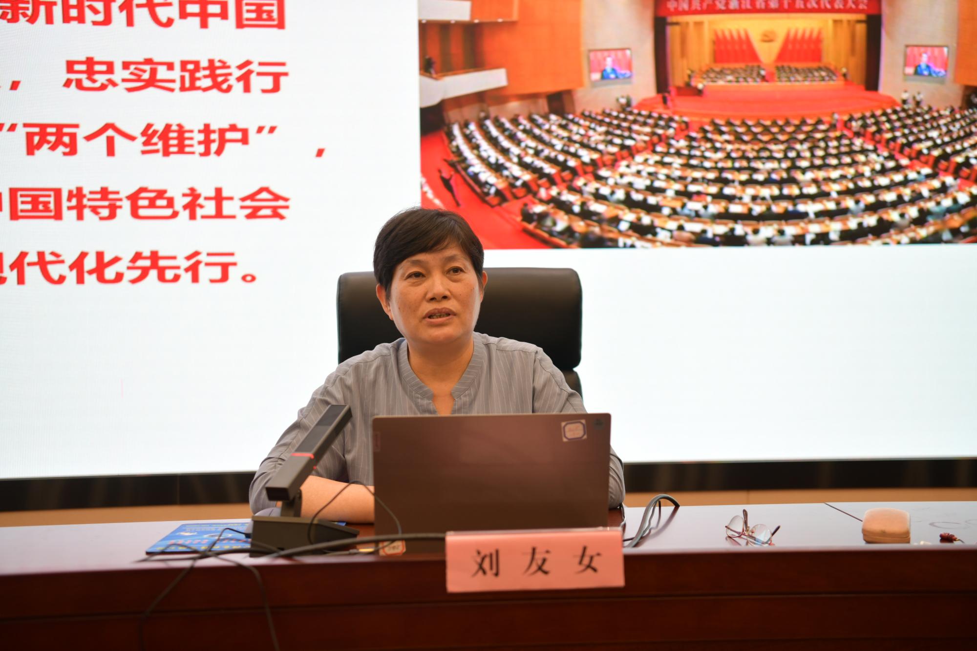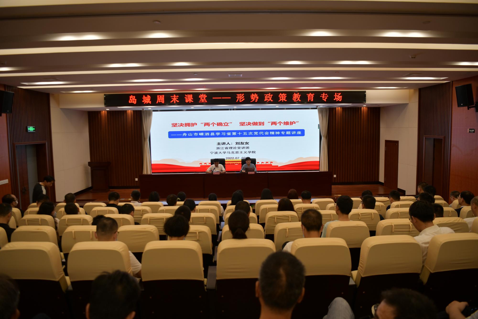 党总支书记刘友女教授受邀走进“岛城周末课堂”,为嵊泗县委机关干部作专题报告。她以《坚决拥护“两个确立” 坚决做到“两个维护”》为题,对浙江省第15次党代会精神实质作了详细分析。刘友女指出,党的十八大以来,习近平总书记5次亲临浙江,对浙江工作作出了一系列重要指示,亲自为新时代浙江赋予光荣使命、擘画宏伟蓝图。党中央赋予浙江光荣使命,为新发展阶段浙江的高质量发展、竞争力提升和现代化先行注入了强劲动力。要坚决做到“总书记有号令,党中央有部署,浙江见行动”。主持宣讲会的县委宣传部部长刘立峰表示,这次讲座契合广大干部对经济社会发展态势的关切,把党的创新理论宣讲与当地事业发展实践相结合,析事明理,解疑释惑,深受启发。
