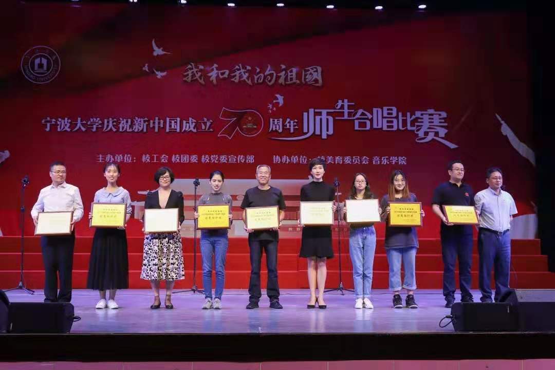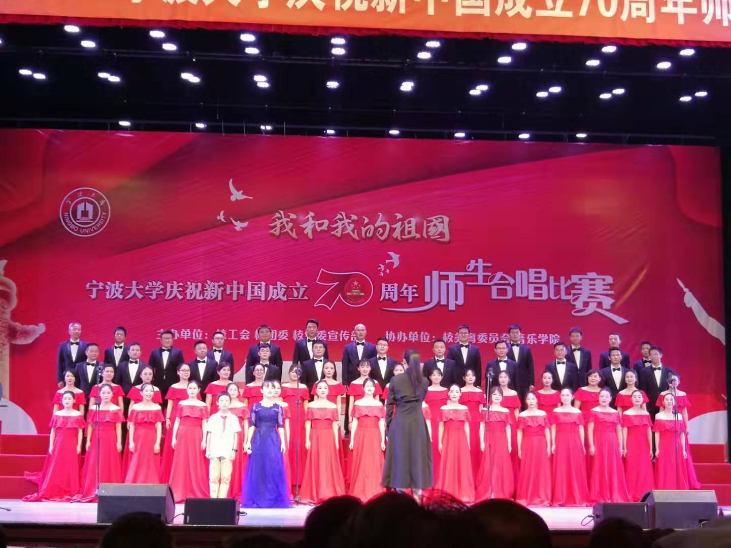 本次“我和我的祖国”师生合唱比赛由校工会、团委、党委宣传部联合主办。鄞州宁大校友会“春潮”合唱团、宁波市老干部合唱团应邀参加了表演。