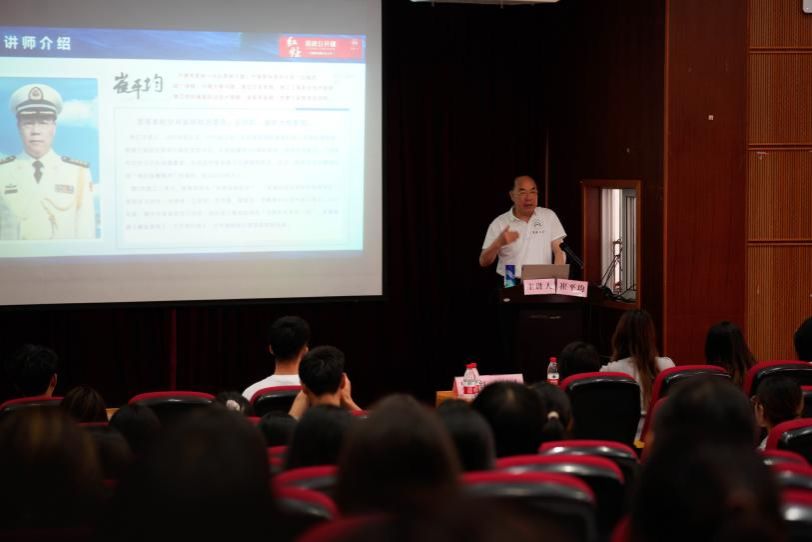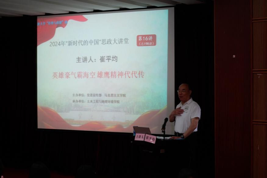 5月22日下午,海军航空兵某师原政治委员崔平均在思禹建工楼报告厅以《英雄豪气霸海空,雄鹰精神代代传》为题,为马克思主义银河娱乐网