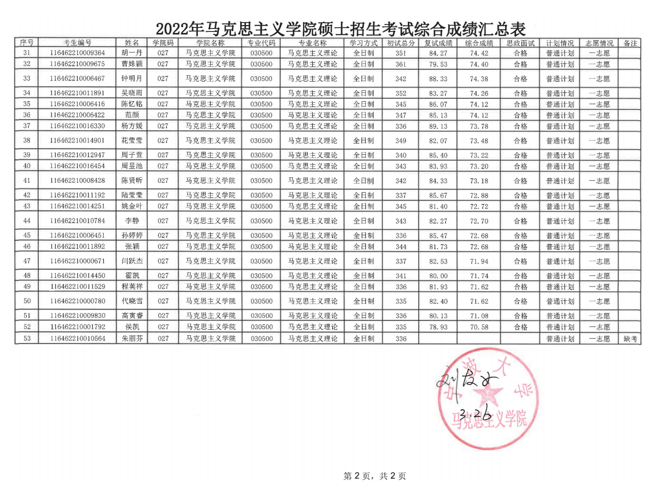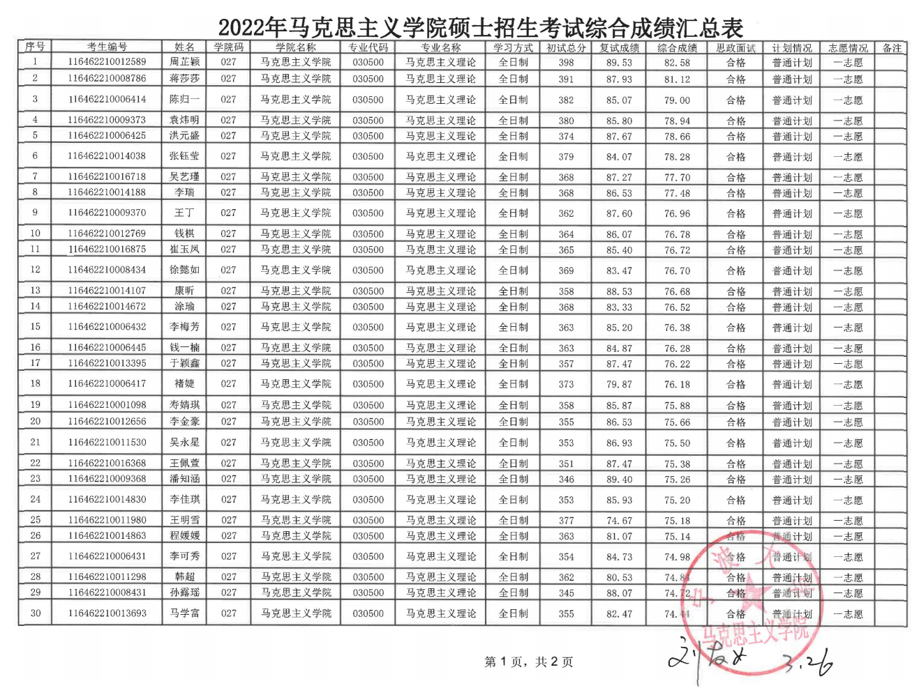 马克思主义银河娱乐网 2022年硕士研究生招生考试综合成绩公示(一)