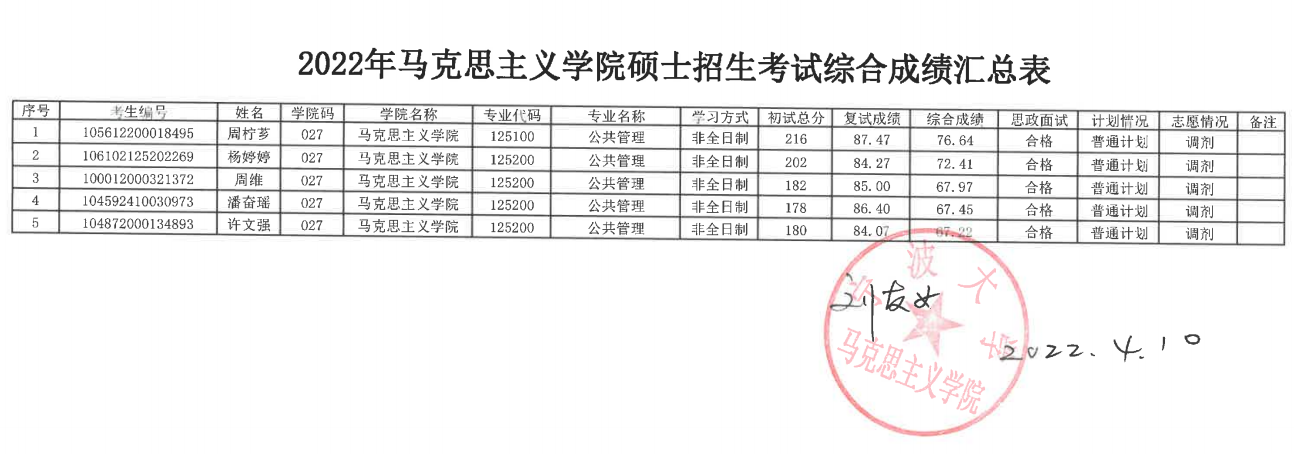 马克思主义银河娱乐网 2022年硕士研究生招生考试综合成绩公示(四)