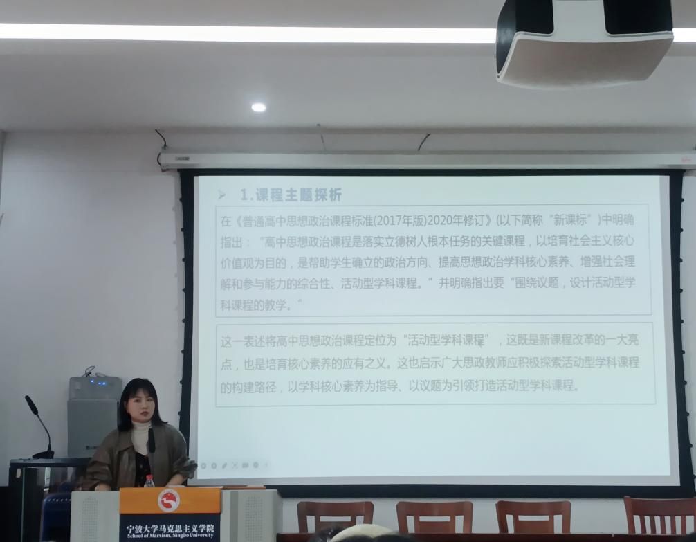 凡昌茹,2017级研究生校友,现就职于浙江省平湖中学,担任政治教师。校友凡昌茹结合高中政治的教学特点以及自身教学经验,以高中政治课本必修二第一单元第一课“我国生产资料所有制”为例展开如何说课这一主题。凡昌茹将说课框架进行创新,分为课程主题探析、课程目标明确、课程教学实施及课后知识迁移四大部分,并将说课的基本环节嵌入。最后,针对如何说课提出了两点建议,一是形式上凸显个性化,增强创新性;二是内容上突出重难点,增强专业性,深入浅出地介绍了说课的基本内容,使同学们易于理解。