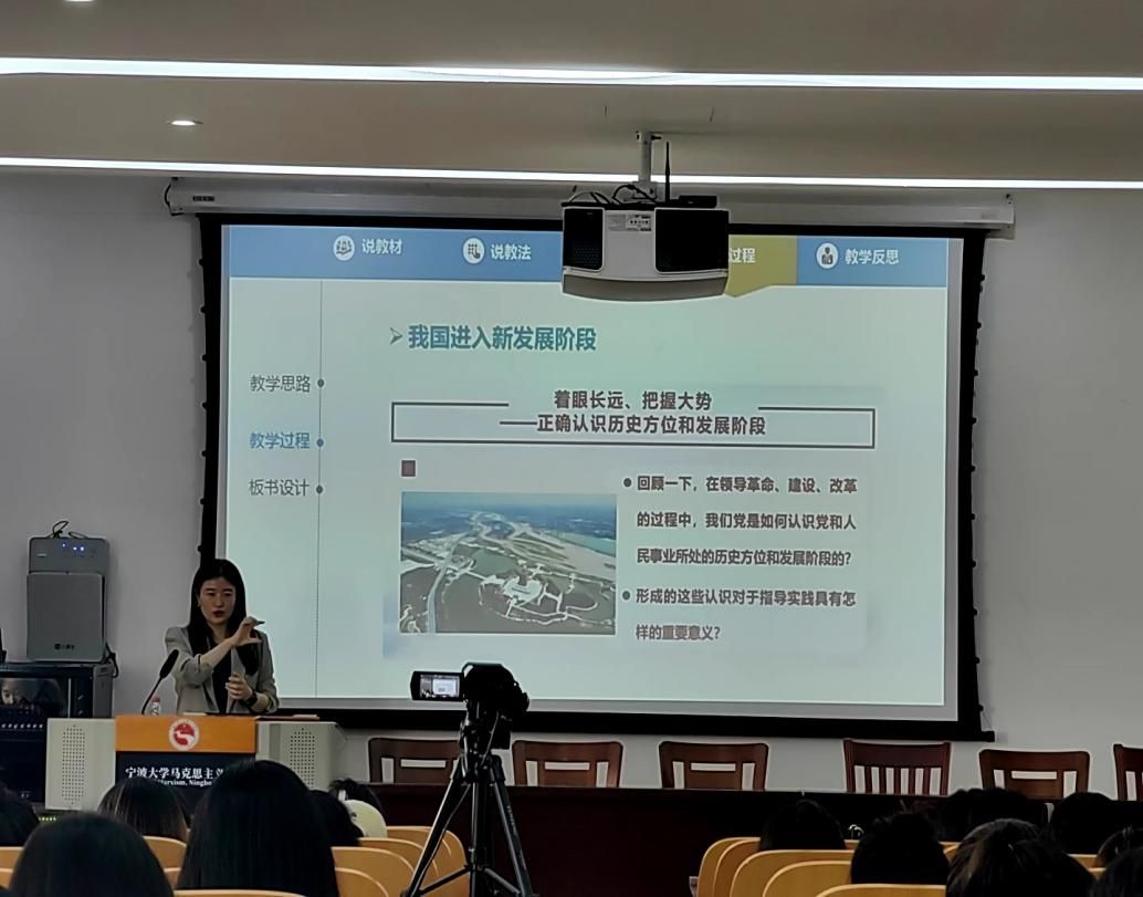 ,担任思政教师。校友张丽结合自身多年教学经验,以高校思政教材即习近平新时代中国特色社会主义思想概论第六章第一节完整、准确贯彻新发展理念一课为例,进行说课展示及分享。她指出说课的主要环节为说教材、说教法、说学法、说教学过程及教学反思,并以本课为例进行了详细的讲解。最后张丽与同学们进行互动交流,叮嘱学生要深入了解教材、分析教材,并对教学方法进行创新,提高思政课的抬头率;还要对学情进行深度分析,做到因材施教。