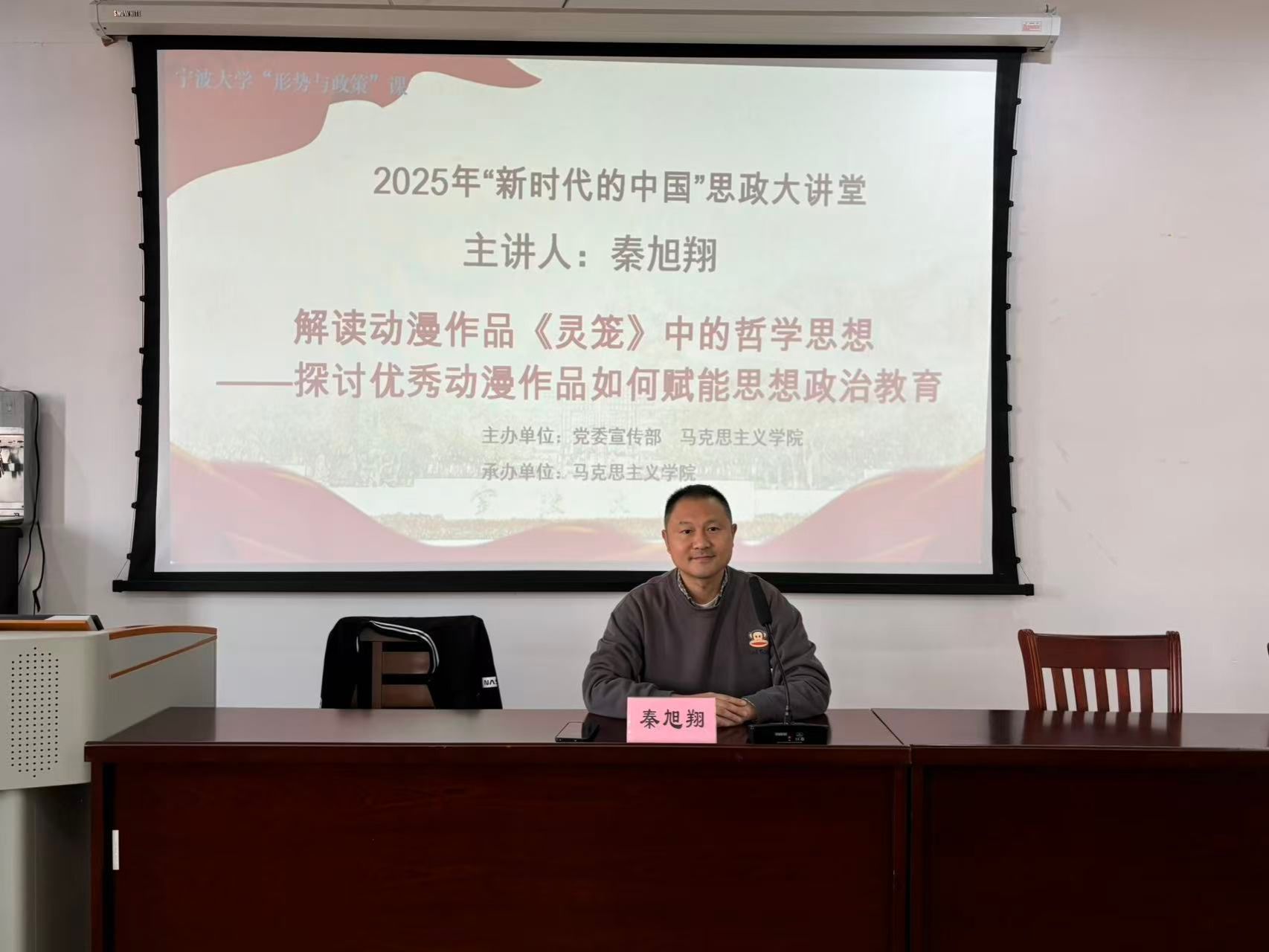 教师秦旭翔为2023、2024级思想政治教育(师范)专业的本科生们带来了一节主题为“解读动漫作品《灵笼》中的哲学思想——探讨优秀动漫作品如何赋能思想政治教育”的形势与政策课。