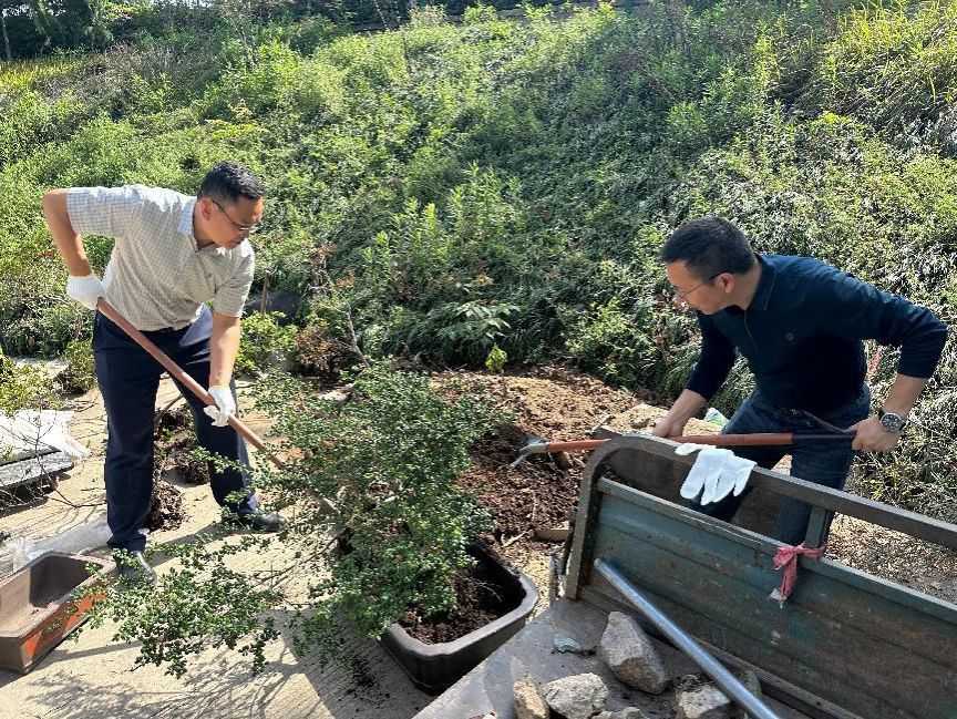 在正式开始前,杜校长与刘院长为大家展示了盆景制作的全过程。随后大家从众多苗木中精心挑选出心仪的盆栽,有的造型古朴、有的叶片繁茂。在园艺老师的指导下将植花盆,填土、扶正、压实,每一个步骤都一丝不苟。在修剪环节,同学们充分发挥想象力和创造力,