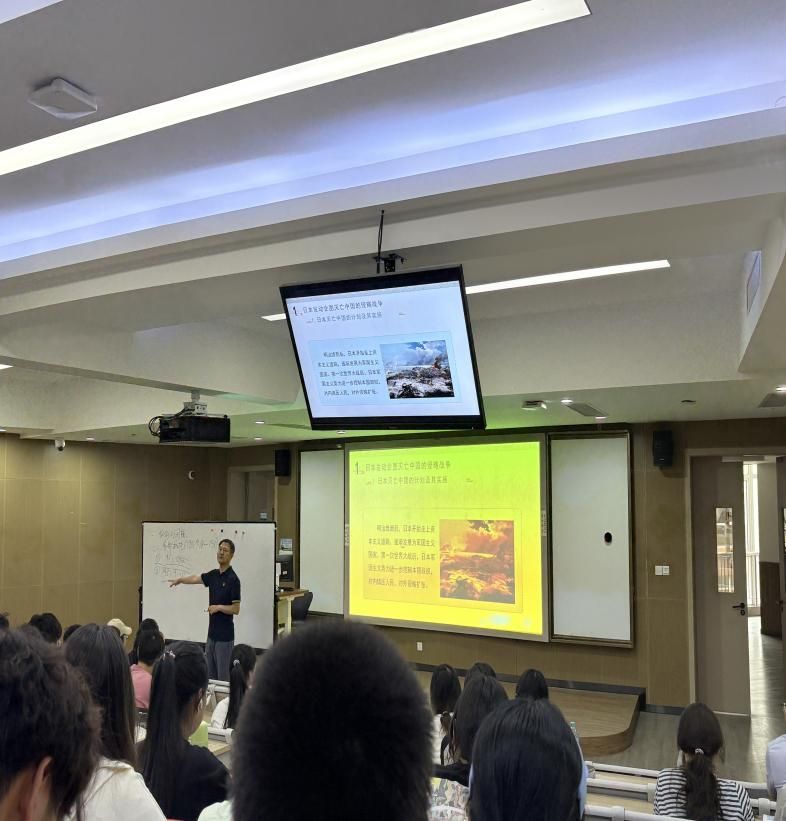 此次秦旭翔老师主讲的课程是《中国近现代史纲要》中“中华民族的抗日战争”专题的内容。首先,秦老师从纵向时间轴方面,采用史实和历史人物相结合的方式,讲述了日本侵华的原因、计划、过程以及国内当时的现状和对策。其中着重从战略防御、战略相持、战略反攻三个阶段讲述了全面抗战的经过、结果及意义。其次,秦老师通过讲解党的‘三大法宝’,带领同学们学习了中国人民抗击日本侵略战争、抗日战争中的正面战场与敌后战场,以及党在抗日战争时期总结的经验和教训、克服的各种错误作风和习气。最后,秦老师通过书本、课件及影视资料,带领同学们回顾了抗日战争的深刻历史,加深了同学们对这段历史的认知,取得了良好的教学效果和反馈。