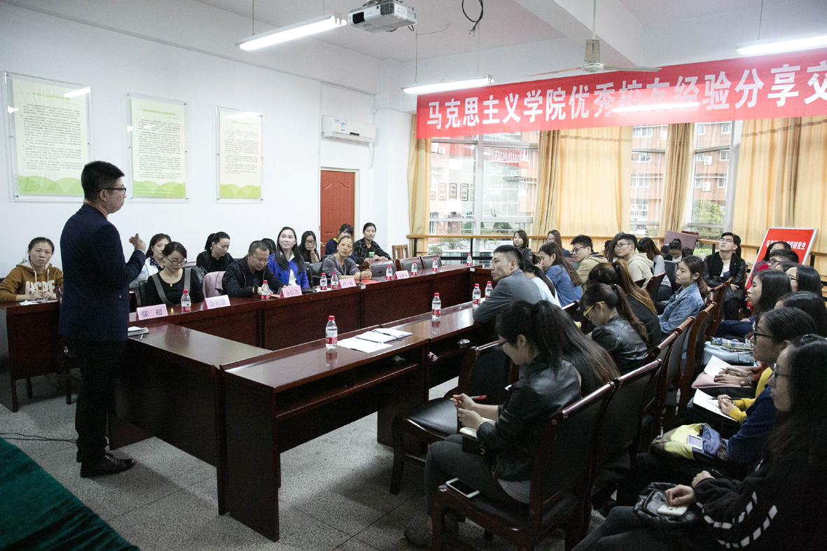 党总支书记方晓春主持了此次优秀校友经验分享交流会。分享会设公务员、教师、创业、辅导员4个版块,方晓春对7名校友作了详细介绍。蒯烨、王龙辉两位校友目前在省内高校做辅导员,研究生期间都曾担任研会主席,有责任心,工作能力强。两人从如何报考高校辅导员,参考什么书籍,如何应对笔试、面试等方面给学弟、学妹支招。余新静校友毕业后一直在中学从教,她从个人经历出发就如何笔试、面试成功以及如何讲好一节课做了指导。卢红、余信吉两位校友则对如何成功考上公务员以及成为公务员后如何做人做事做了解答。创业者张超、李浩两位校友,前者用“稳”、“准”、“狠”三个字概括自己如何创业成功,后者从心态、模式、产业、资本、团队五个方面概括了自己是如何应对创业挑战的。校友们还与在座的同学进行了互动交流。