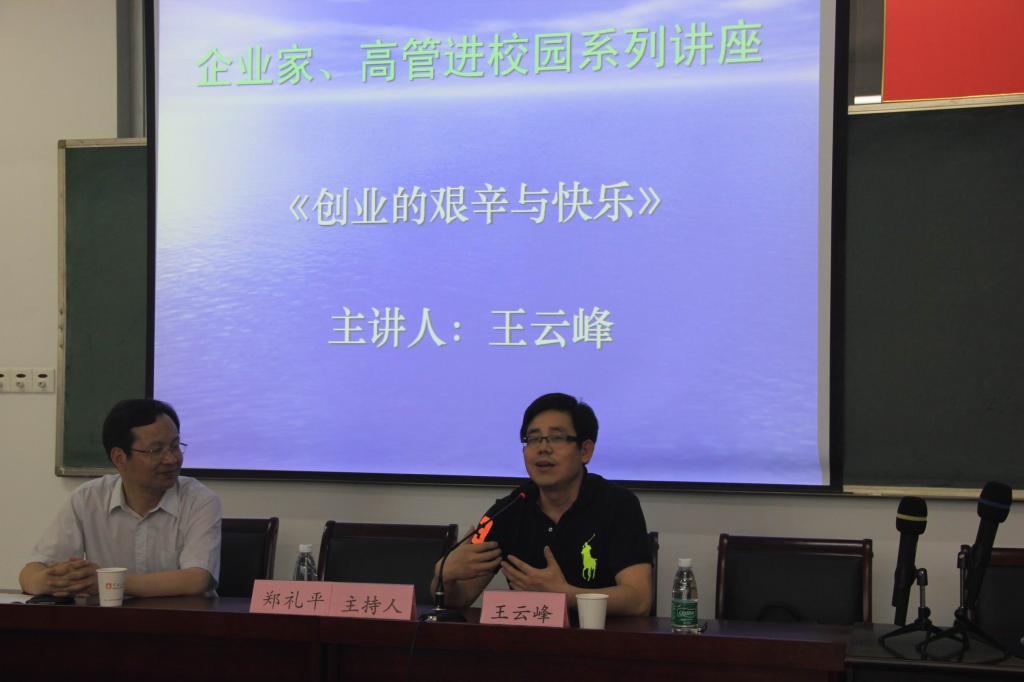 马列主义教研室教师,1994年开始创业,现任浙江恒顺物流有限公司总经理,是一位企业家校友。他结合自身的艰辛创业历程,生动地描述了自己的成长经历,畅谈了对人生的感悟,与聆听讲座的学子分享了在困难面前如何坚守信念,以及实现目标后收获的快乐。并与在场的学生就相关专业的发展趋势、毕业后的职业选择、现代物流业的发展现状及存在问题等方面进行了互动交流。同学们积极提问,踊跃发言,王总的解答更是客观中肯,发人深省。整个讲座气氛活跃,同学们不时给予热烈的掌声。
