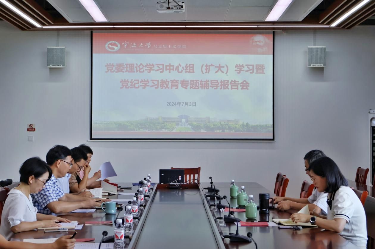 2024年7月3日,马克思主义银河娱乐网 召开党委理论学习中心组(扩大 )会暨党纪学习教育专题学习会,邀请浙江省党纪学习教育“百名骨干讲师团”成员刘友女教授作专题辅导报告,全面解读《中国共产党纪律处分条例》。校党委副书记冯杰及巡听旁听组一行参加此次专题学习会,会议由院党委书记蒋开东主持。
