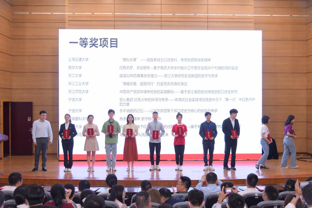 本科生团队《永不消逝的声音——以浙东新四军个体口述史为核心的记忆与传承》项目喜获一等奖,取得了学生学科竞赛有史以来的最好成绩。同时,该团队在省赛中被评为“红色专项十佳团队”。